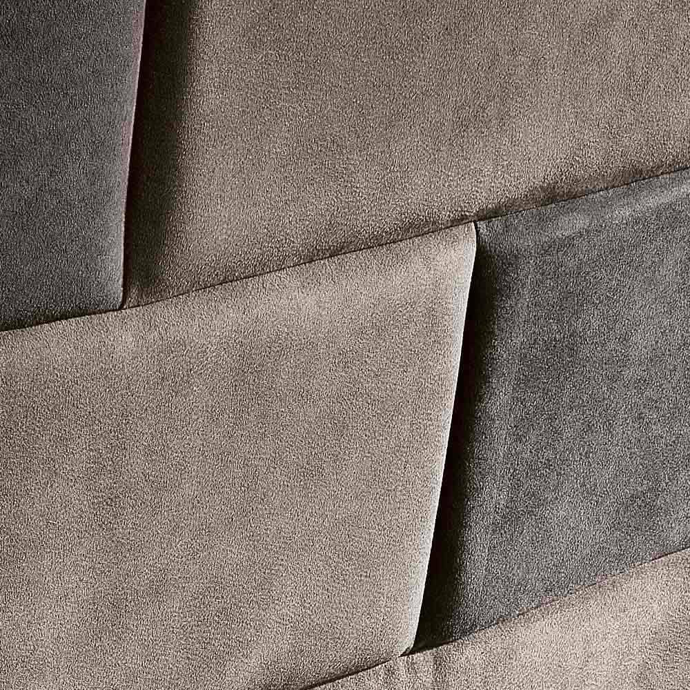 Designová postel Gin má důležité čelo, složené ze sektorového prošívání se dvěma kontrastními barvami, které oblékají pružná polstrovaná záda. Podstata jeho stylu je v tomto sledu podstatných rysů, v harmonii jeho proporcí. Při pohledu zepředu se zdá, že byl navržen se silným záměrem ohromit.