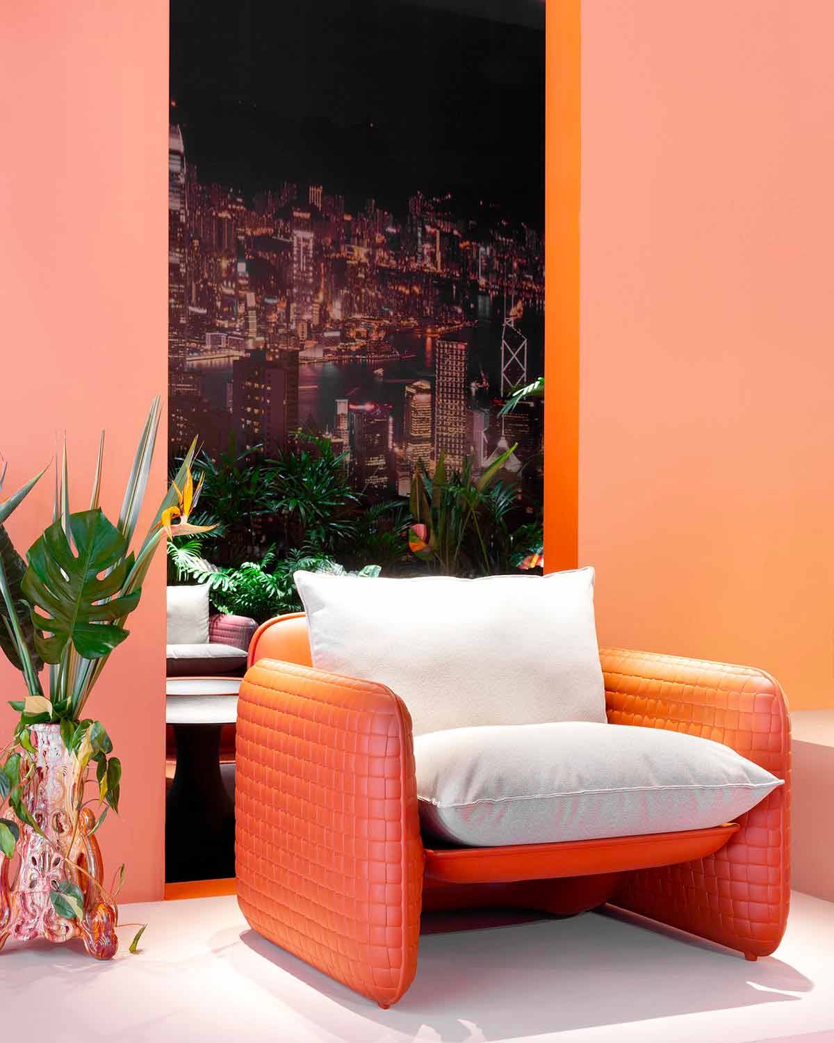 i venkovní použití , textura jeho struktury připomíná řemeslnou zručnost tkané kůže, která žije v celé struktuře. Dobře se hodí