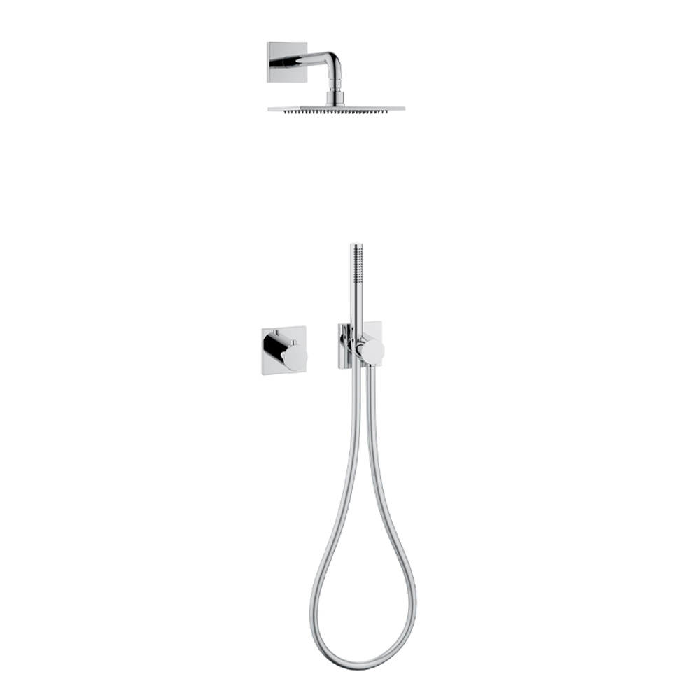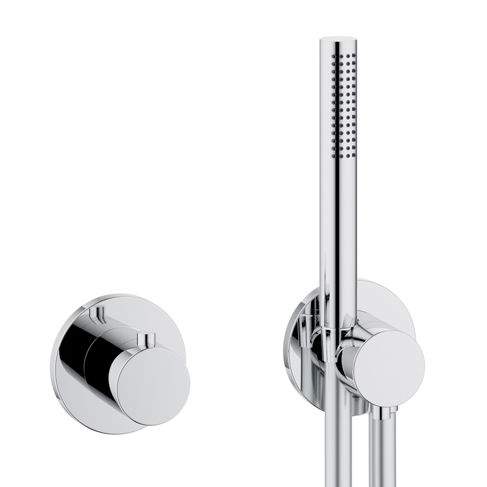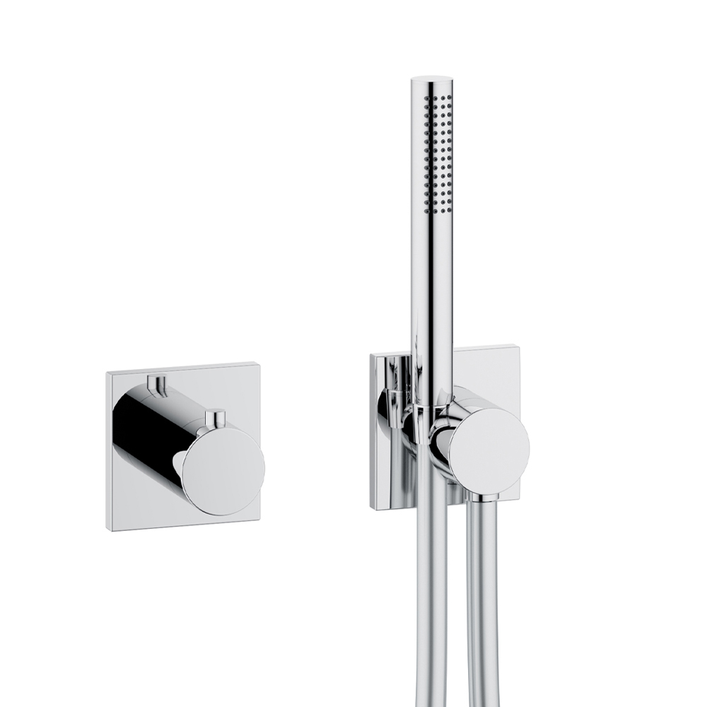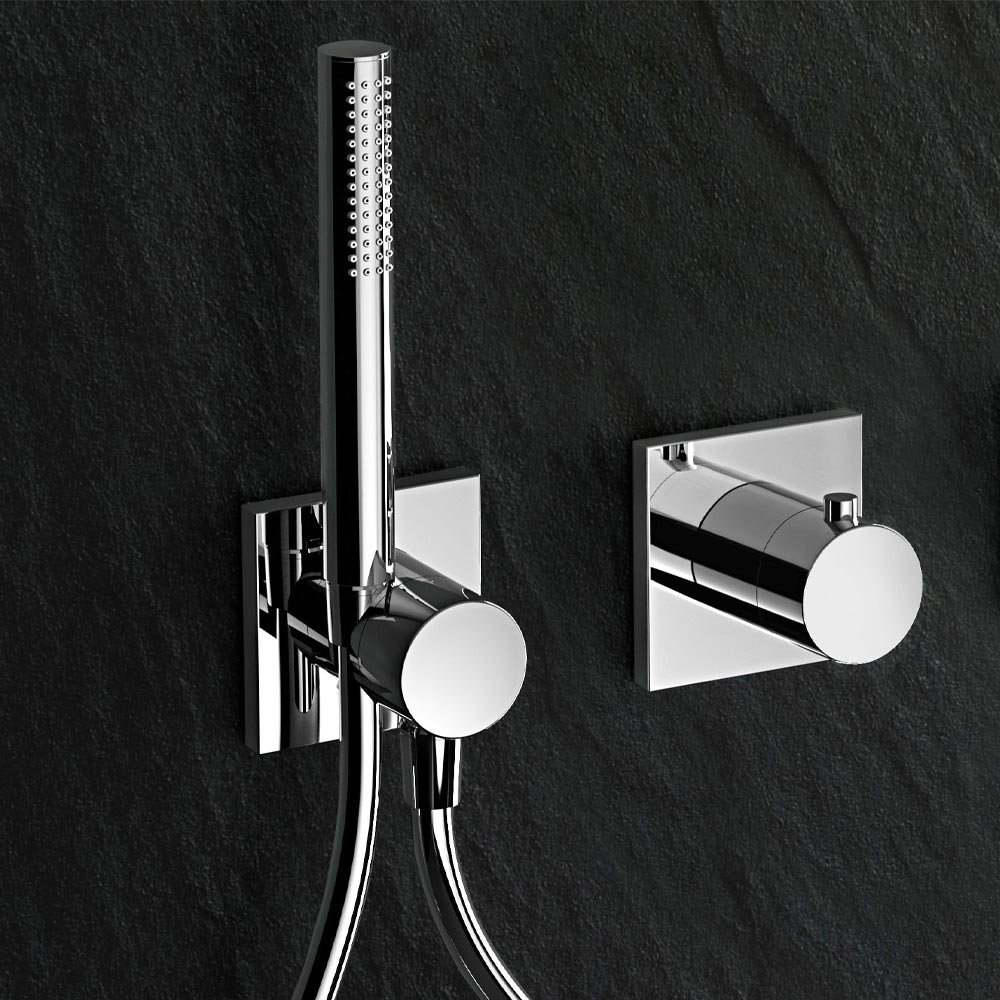 - Podomítkový dvoucestný uzavírací ventil a přepínač s flexibilní hadicovou přípojkou a nástěnnou sprchou