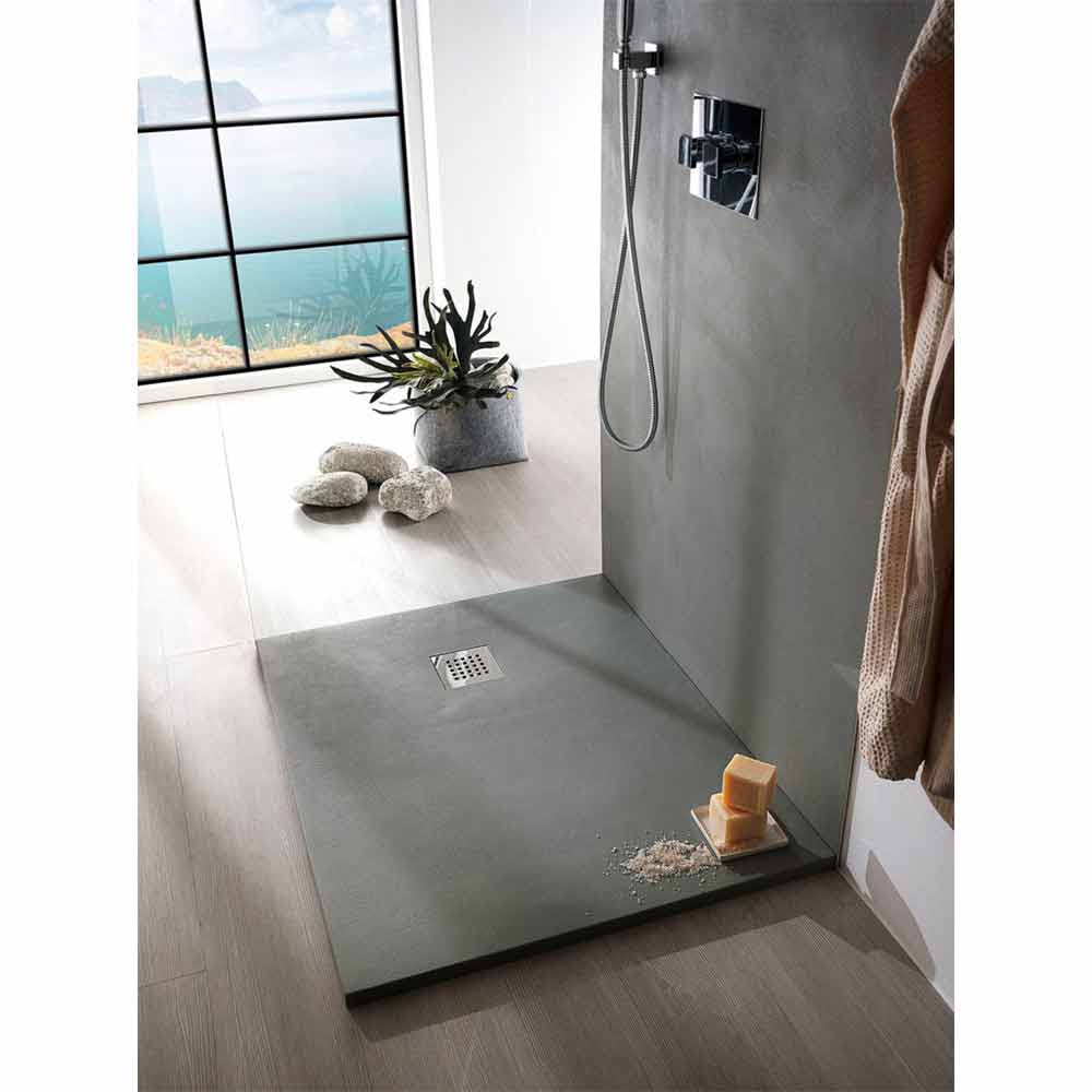 Sprchová vanička v moderním designu s povrchovou úpravou bílý nebo šedý beton.