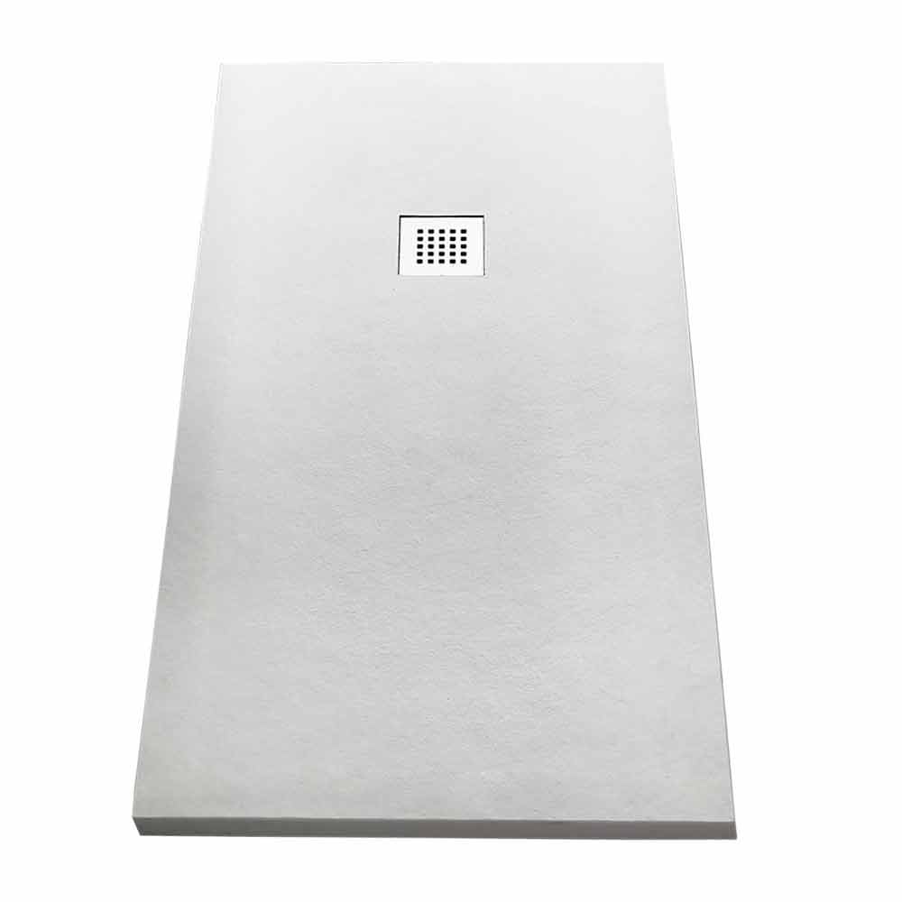 Moderní sprchová vanička 170x80 v kamenném efektu s ocelovou mřížkou.