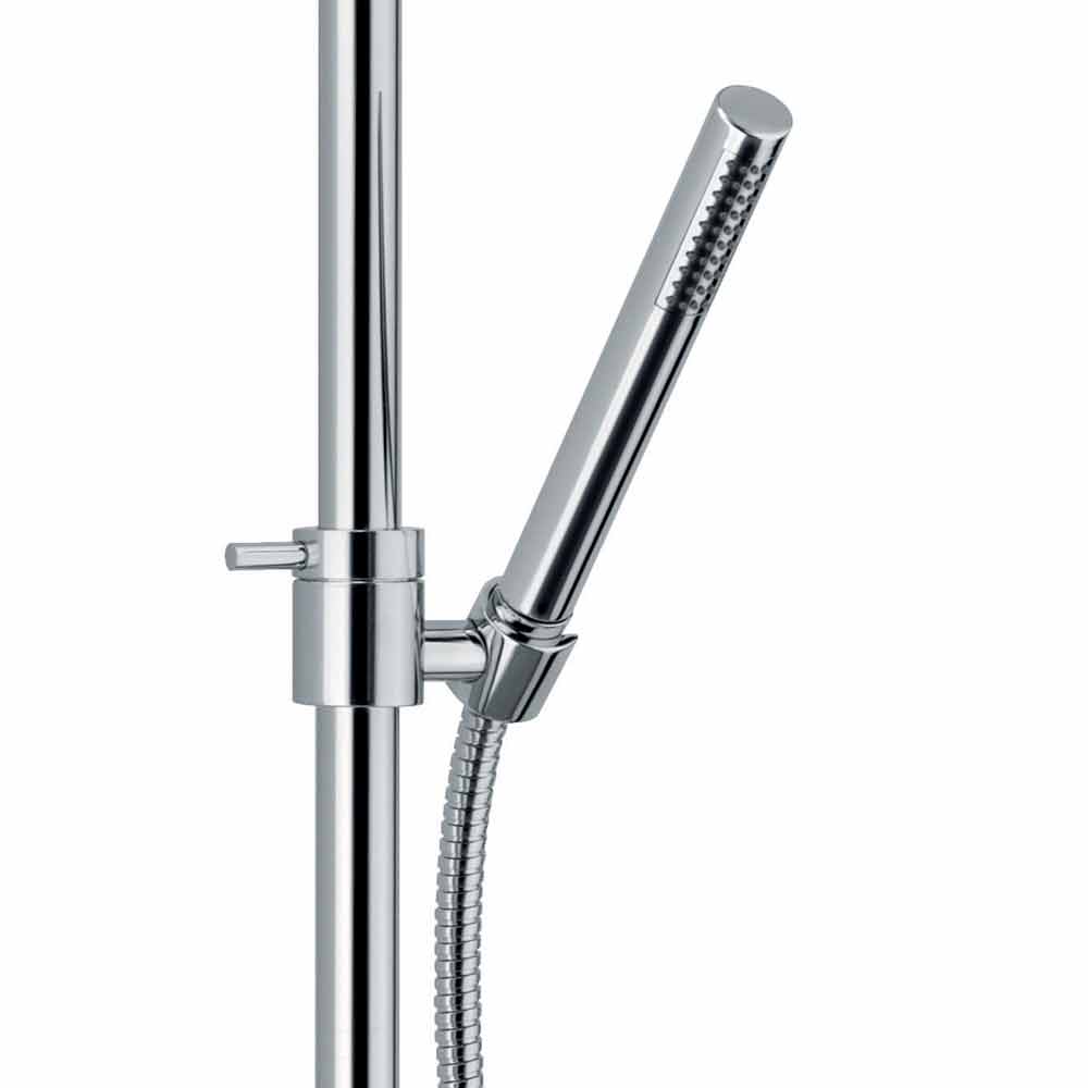 funkčnost , což umožňuje získat sprchový sloup tak krásný a vytříbený, že je praktický a snadno použitelný. Posuvná podpěra umožňuje nastavit výšku ruční sprchy, zatímco 150cm hadice vám ji umožní zcela zvládnutelným a pohodlným způsobem.