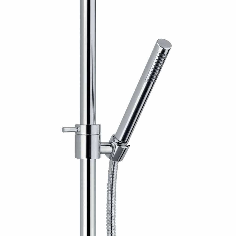 funkčnost , což umožňuje získat sprchový sloup tak krásný a vytříbený, že je praktický a snadno použitelný. Posuvná podpěra umožňuje nastavit výšku ruční sprchy, zatímco 150cm hadice vám ji umožní zcela zvládnutelným a pohodlným způsobem.