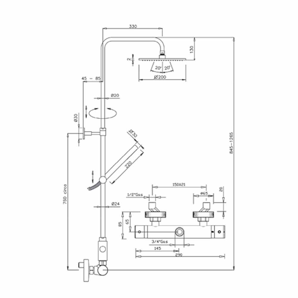 Vlastnosti:- sprchový sloup z pochromované mosazi;
