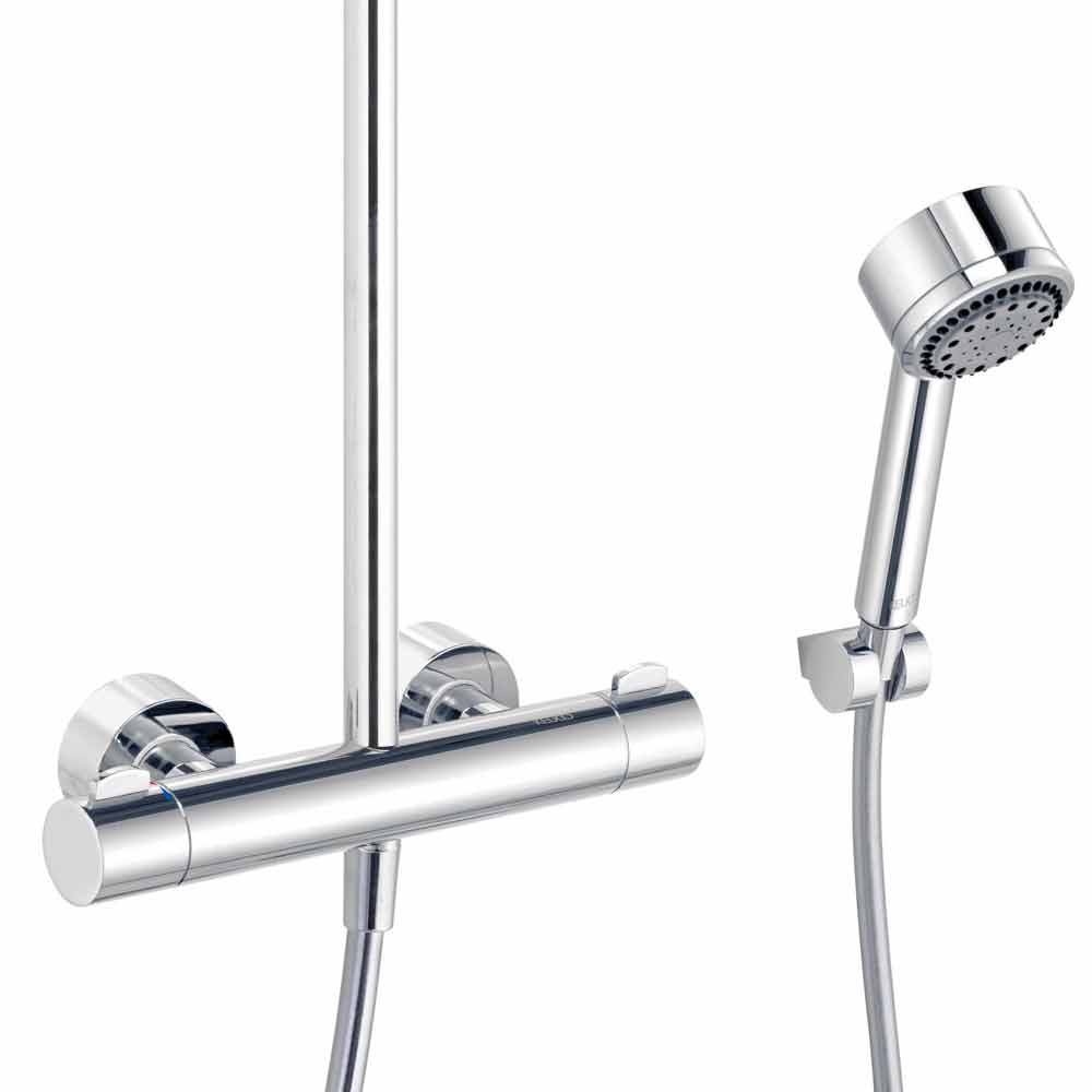 Sprchová baterie se sprchovou hlavicí z pochromované mosazi, která se vyznačuje zvláštním moderním a praktickým stylem .
