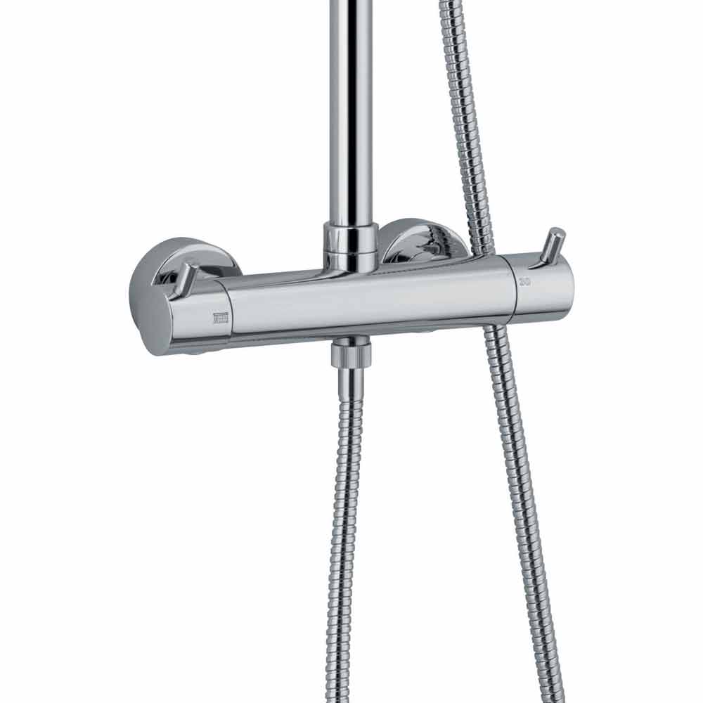 Sprchový sloup z chromované mosazi s baterií a přepínačem Made in Italy.