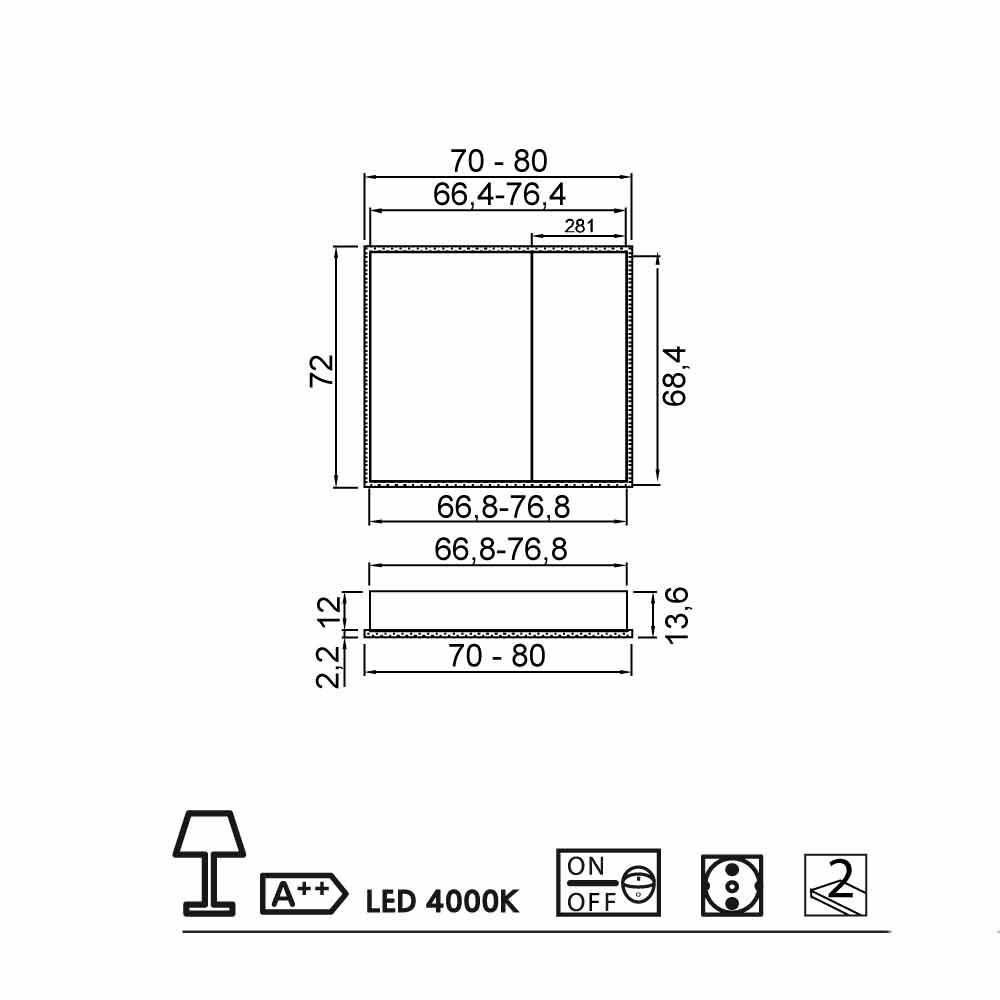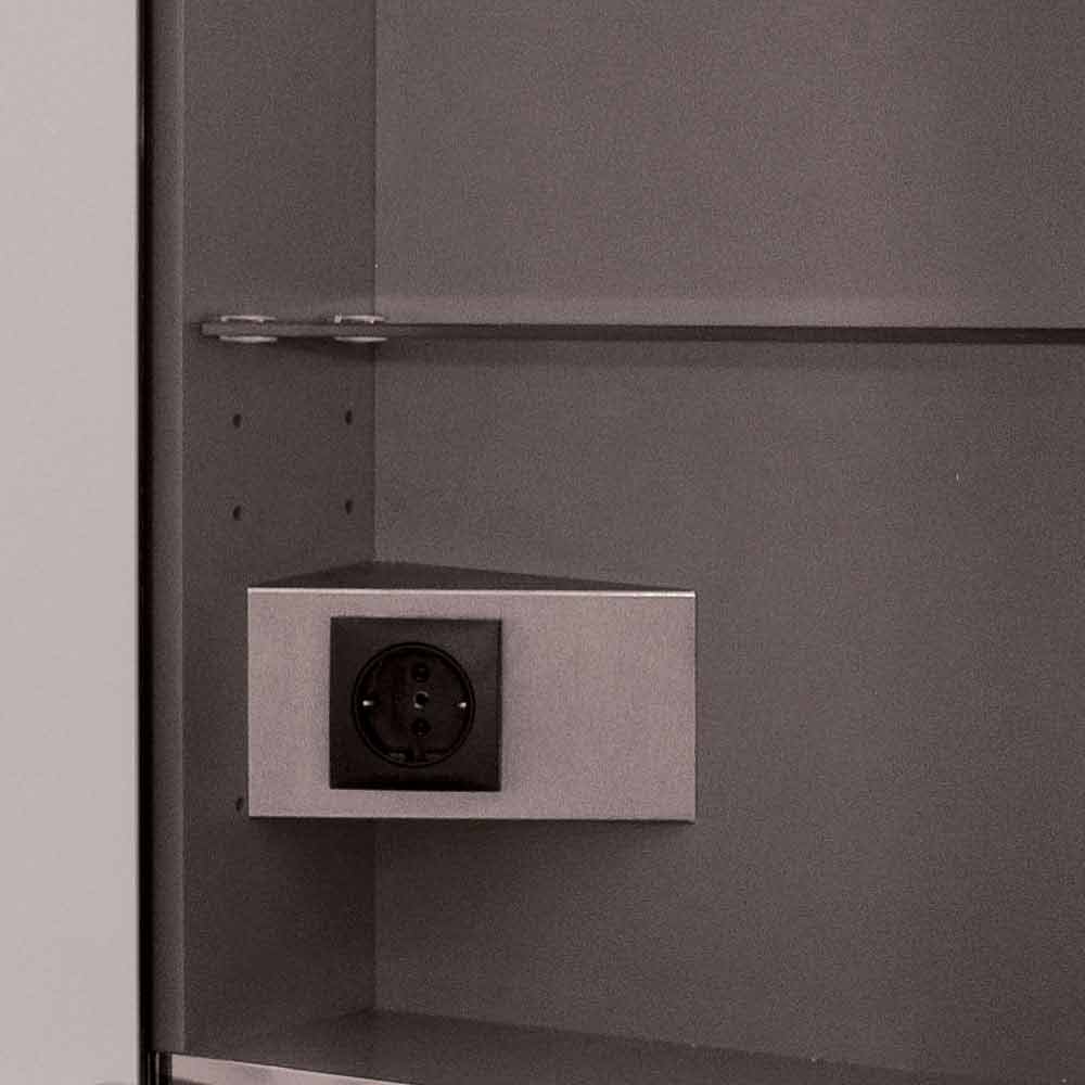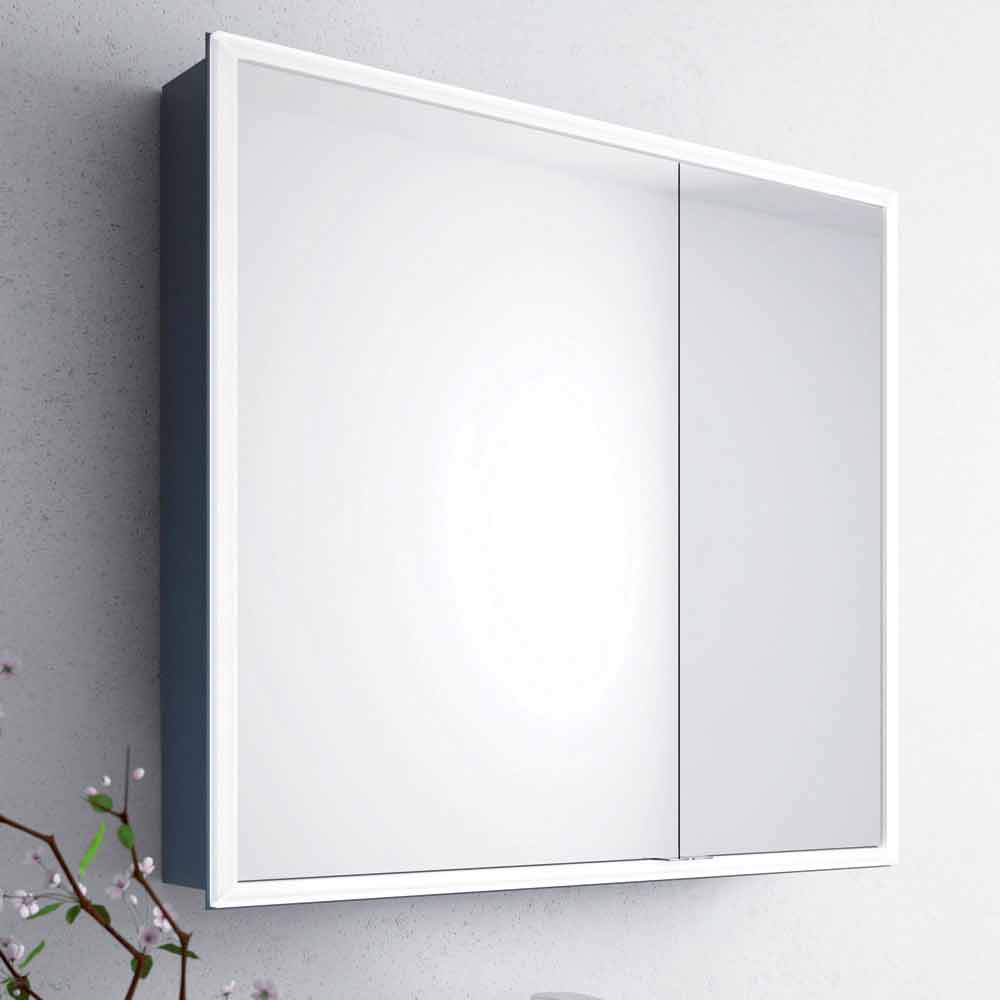 Zrcadlová skříňka se 2 dveřmi s čistými liniemi, kde osvětlení stává designovým prvkem. Struktura FENIX, polymerní materiál s nano technologických vod, vodu odpuzující, anti-otisk prstu a měkký na dotek. Dodáván se zásuvkou a vypínačem.