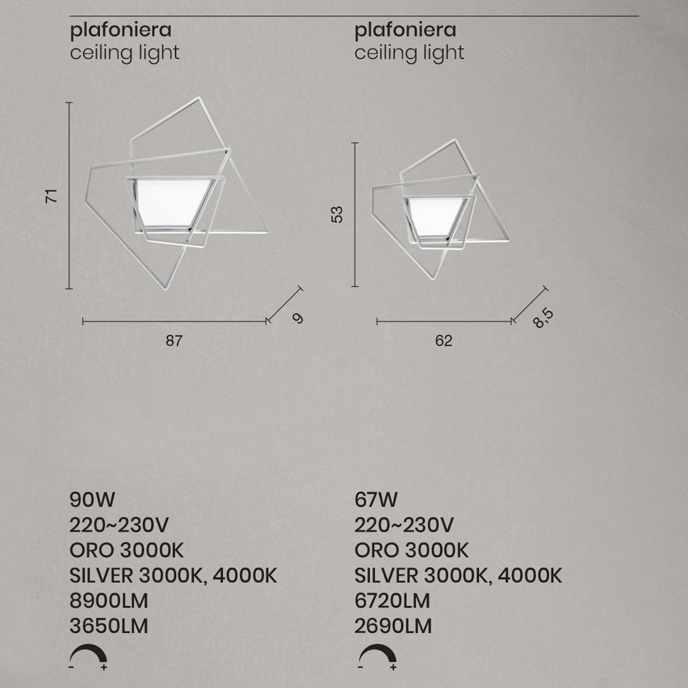 Dostupné povrchové úpravy: Dostupné velikosti:- D 87 x P 9 x V 71 cm (LED 90W 220-230V 3000K 8900LM);