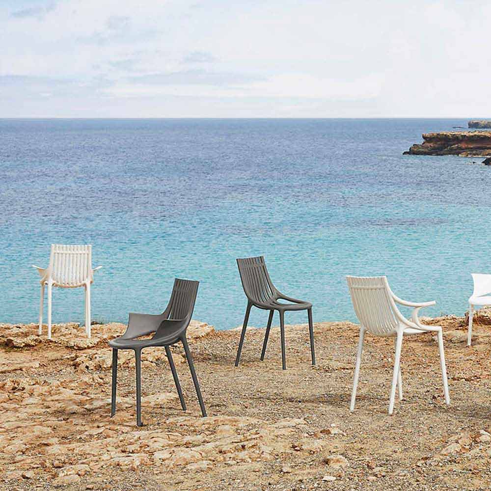 Dostupné povrchové úpravy: Lze zakoupit i polštáře, které nejsou zahrnuty v ceně. K dispozici je také židle vyrobená z recyklovaného plastu ze Středozemního moře pro revoluci v ekologicky elegantním nábytku.