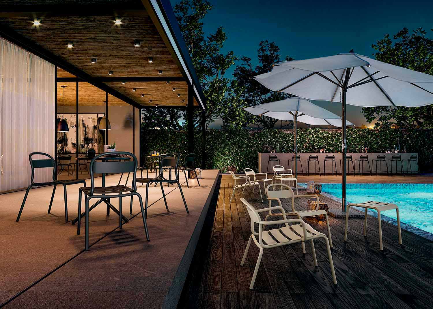 Konstrukce této lenošky umožňuje snadné představení v zahradě nebo na terase, ale nevylučuje její použití ani ve vnitřních situacích v domácím a mimo domácím prostředí. Vyrobeno výhradně z malovaného hliníku , díky 8 dostupným barvám se dokonale přizpůsobí jakékoli situaci v oblasti vybavení, od nejmodernějších po nejtradičnější a pomáhá dodávat místnosti barvu a osobnost.