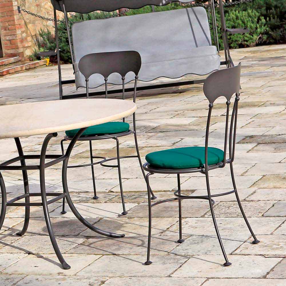 Stohovatelná venkovní železná židle s polštářem vyrobeným ručně v Itálii, 2 kusy.
