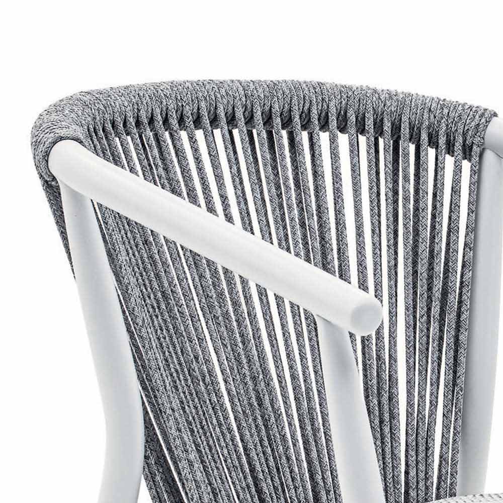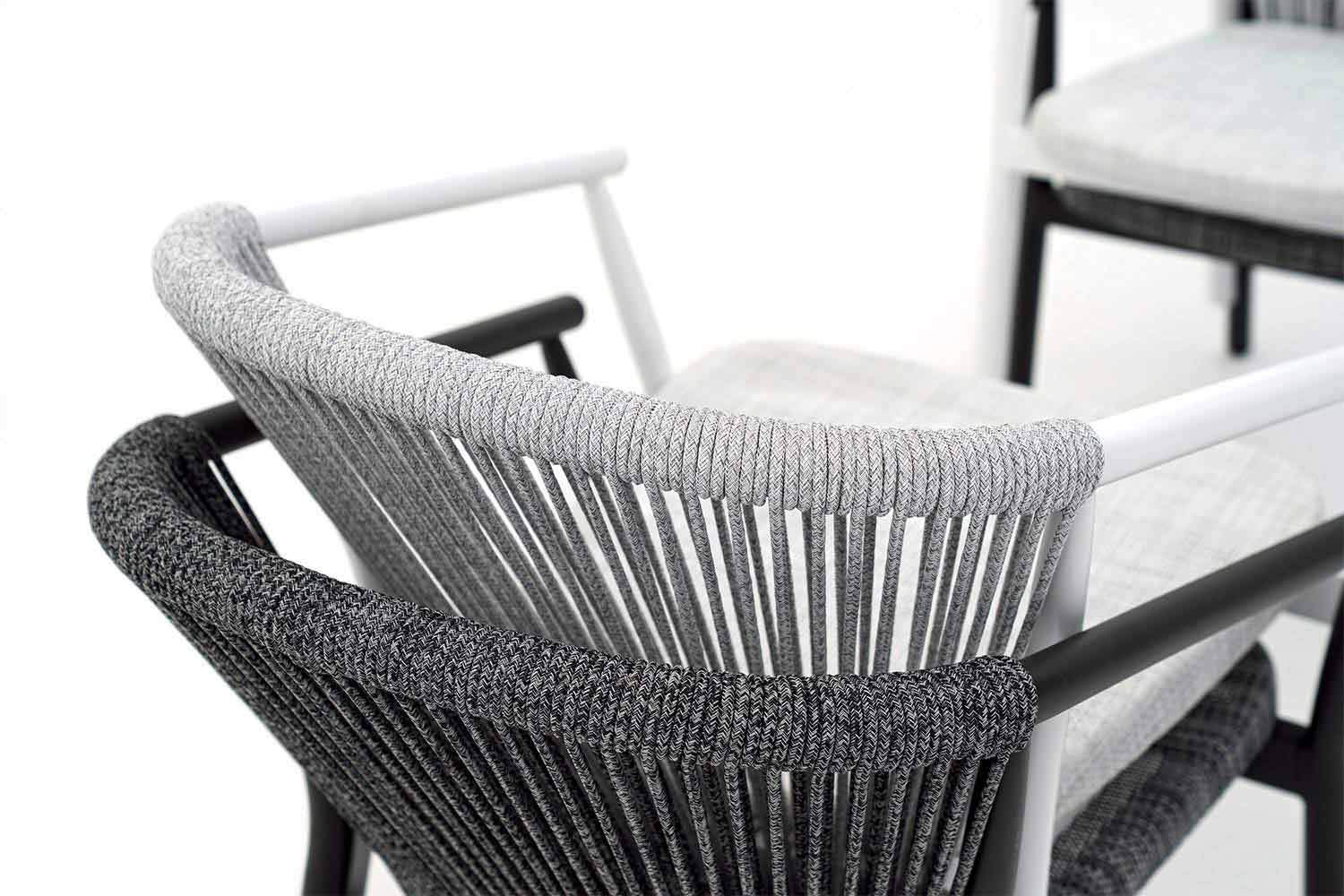 Stohovatelná zahradní židle s moderními područkami vysoké 73 cm, s hliníkovou základnou a sedákem z technické tkaniny s polstrovaným polštářem.