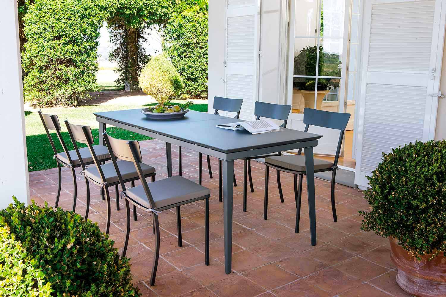 Tato řada venkovních produktů představuje dokonalé spojení nádherného vizuálního efektu a minimalistického designu s jednoduchými a lehkými liniemi díky vysoce kvalitním materiálům a použitým inovativním technikám. Použité materiály a techniky v kombinaci s veškerou silou produktů Made in Italy poskytují každému produktu vynikající trvanlivost v průběhu času a perfektní odolnost vůči všem povětrnostním podmínkám. Díky jemným tvarům a stylu, které tuto řadu produktů odlišují, je vhodná pro nejrůznější prostředí, od soukromých prostor, jako jsou zahrady a terasy, až po smluvní prostředí, jako jsou bary a restaurace.