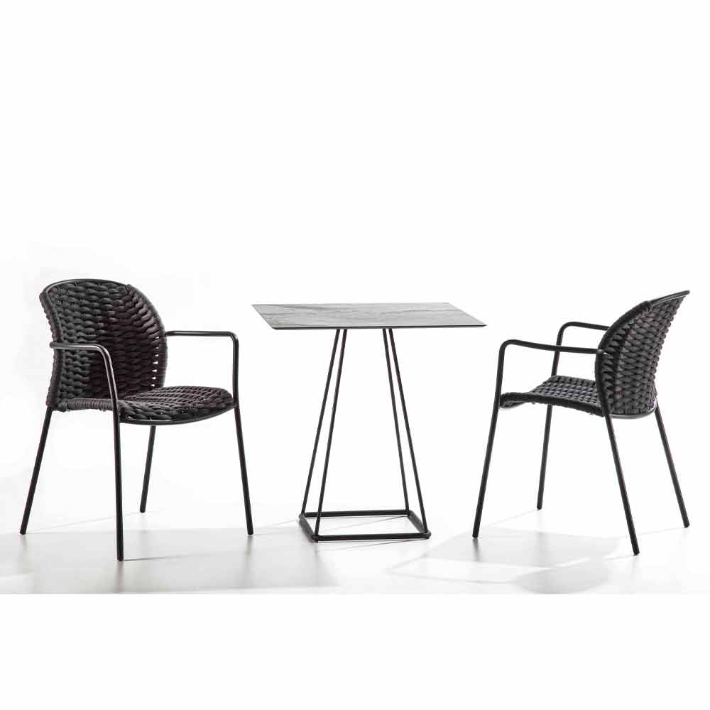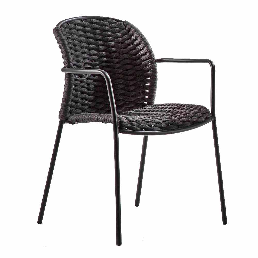 Venkovní židle se stohovatelnou strukturou v pozinkovaném kovovém antracitovém provedení, vybavena područkami a sedákem a opěradlem z tkaného polyesterového lana (uvnitř v gumě), antracitové. Řešení vybavení, které kombinuje optimální pohodlí a příjemnou estetickou stránku, která dokonale odpovídá nejrůznějším stylům vybavení. Jeho estetika ve skutečnosti umožňuje dokončit venkovní plochy vytvořením dokonalé harmonie s ostatními přítomnými prvky nebo hraním v nádherných stylových kontrastech pro exkluzivní a avantgardní výsledek .