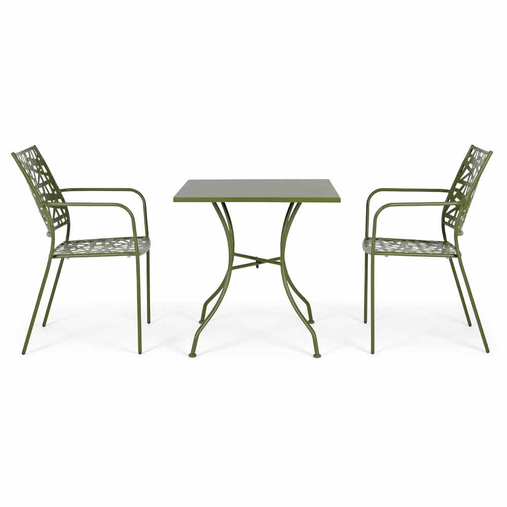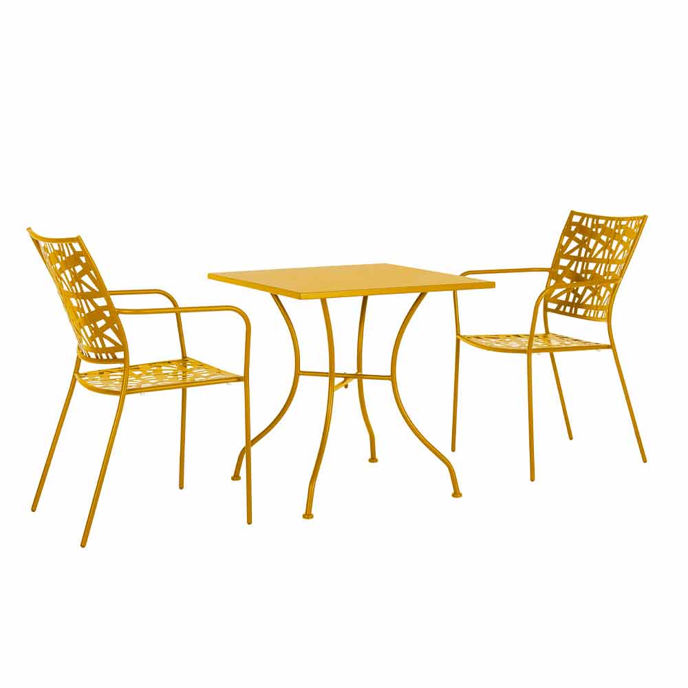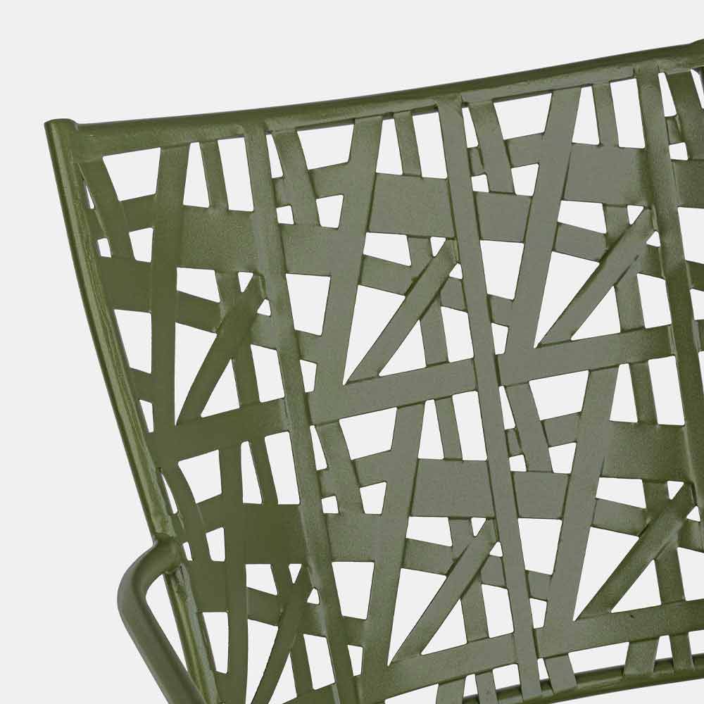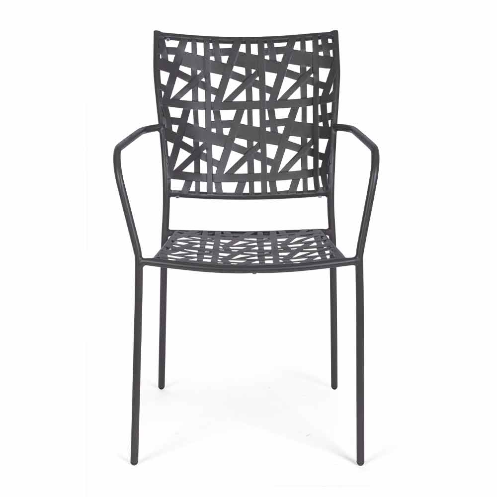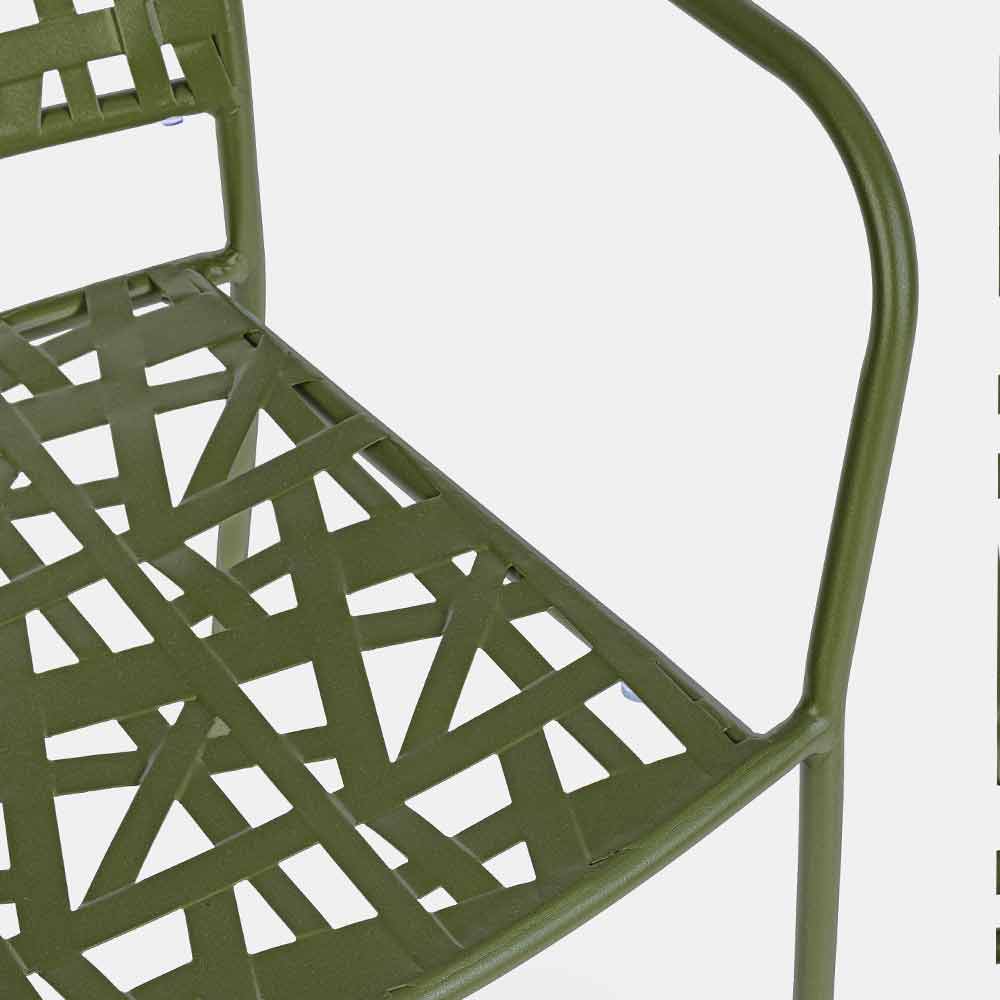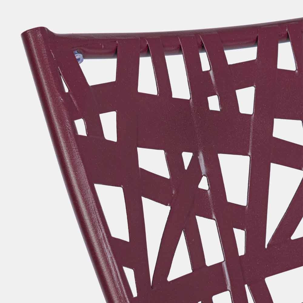 Stohovatelná venkovní židle s lakovanou ocelovou konstrukcí.