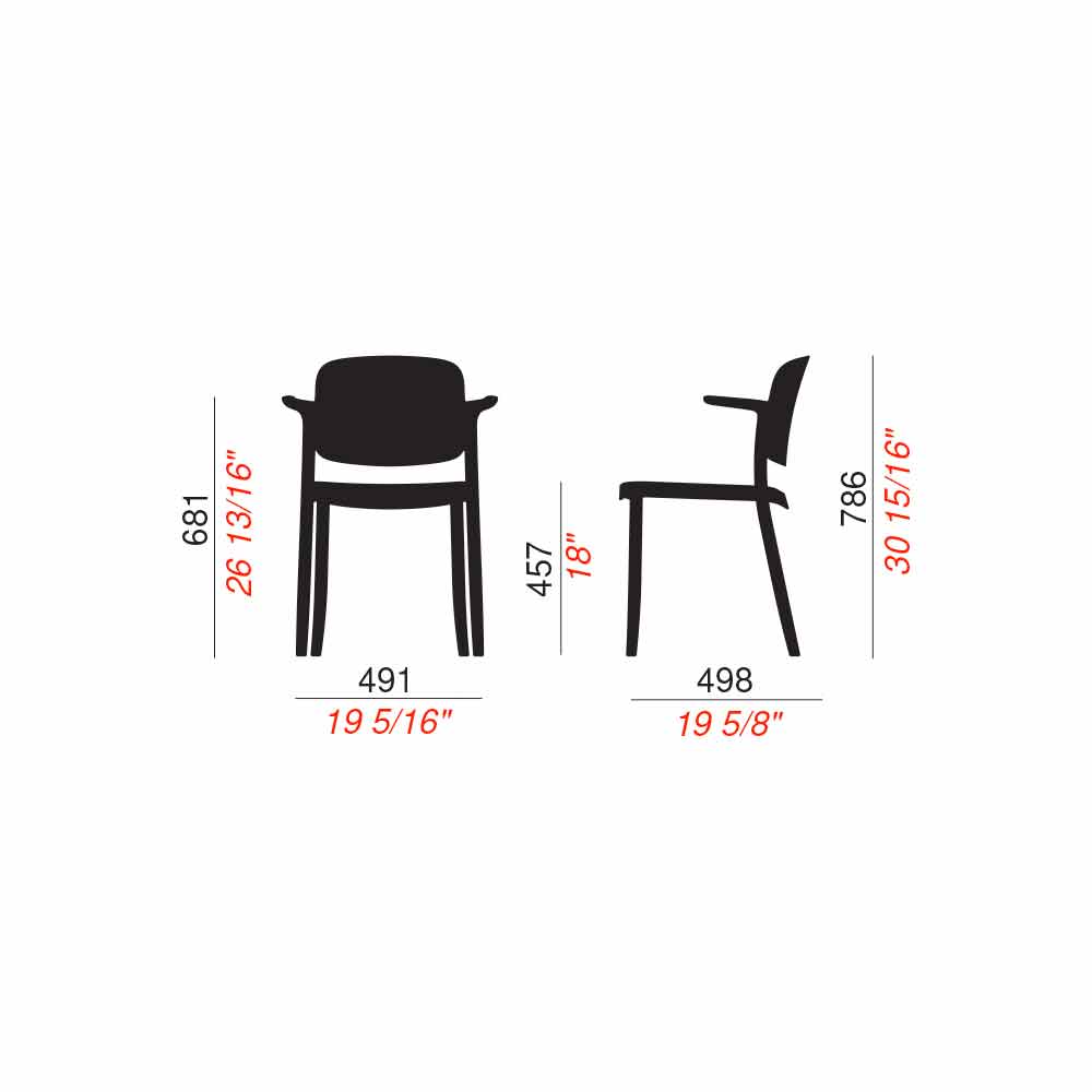 Polypropylenová venkovní židle s stohovatelnými područkami, 4 kusy, vyrobené v Itálii.