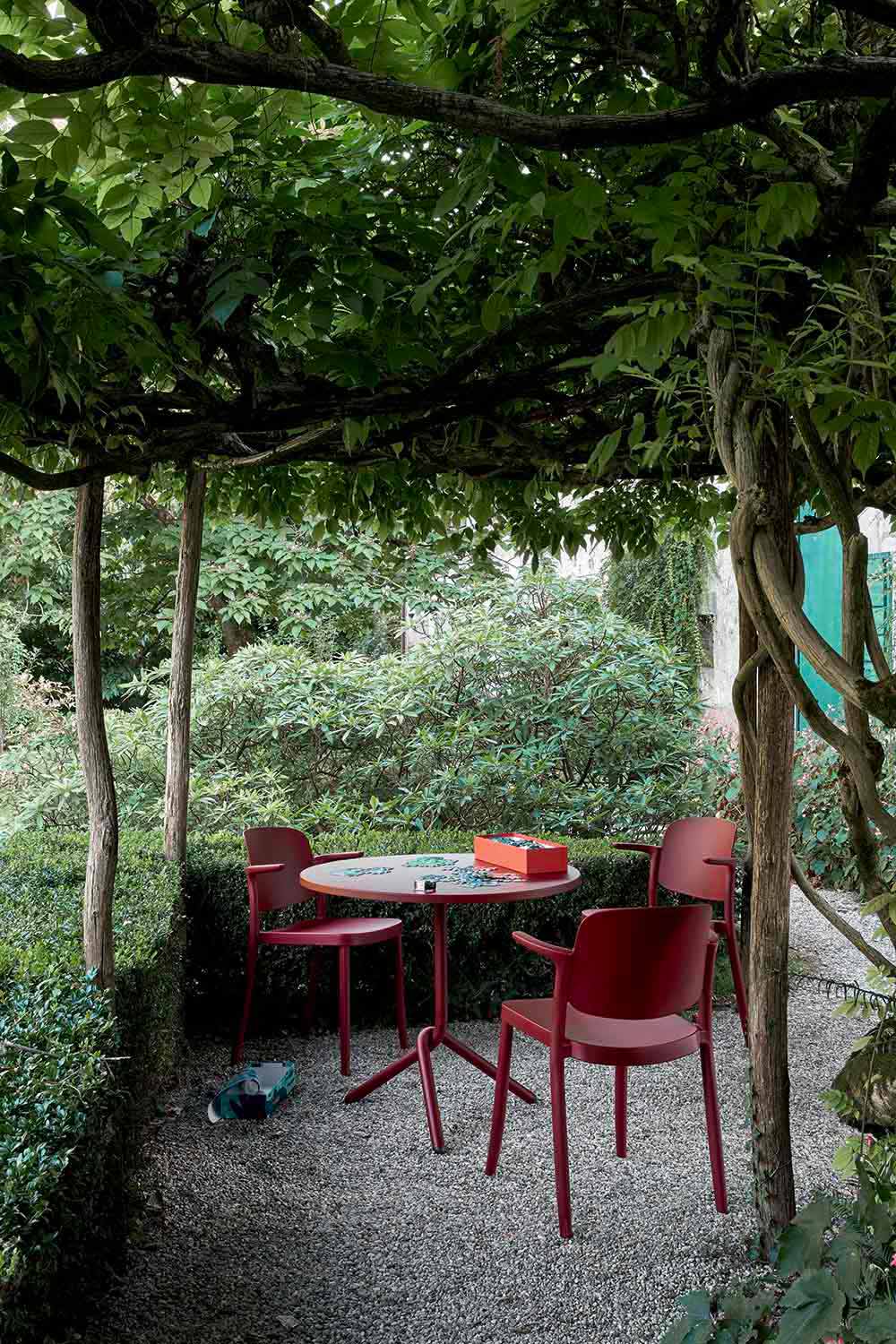 Venkovní židle Bertina se vyznačuje designem, který dokáže dokonale kombinovat tradici , kterou nalézáme ve formě, s moderností polypropylenu, díky čemuž je odolná vůči všem povětrnostním podmínkám.
