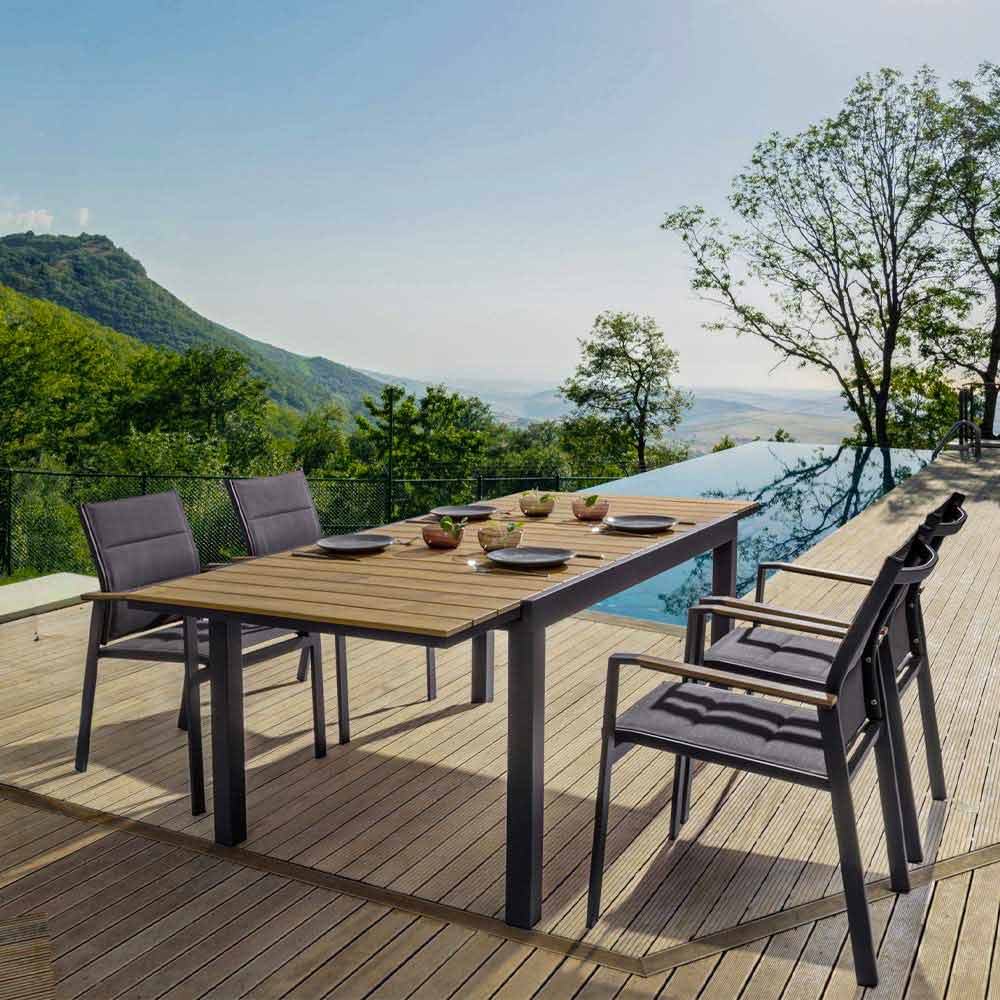 Stohovatelné zahradní křeslo z antracitově šedého hliníku a teaku - Aidan