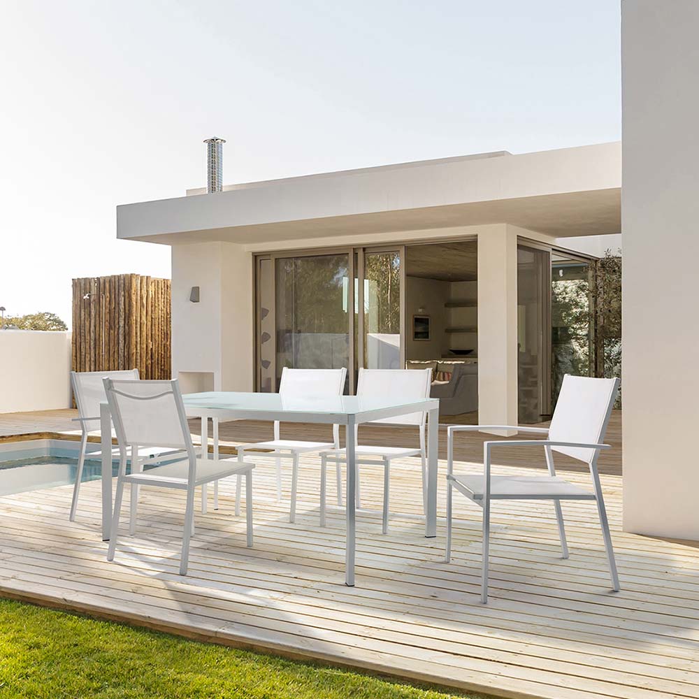 Stohovatelná zahradní židle z hliníku a textilu, moderní design - Franz