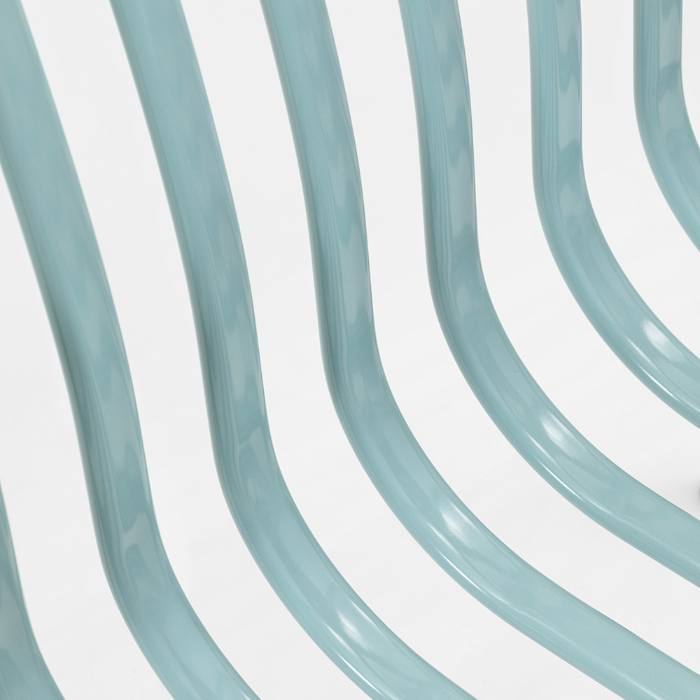 drátěným útkem s vertikálními oválnými tvary, které harmonicky a klikatě kopírují ergonomické tvary konstrukce a nejlépe se přizpůsobují siluetě těla a nabízejí