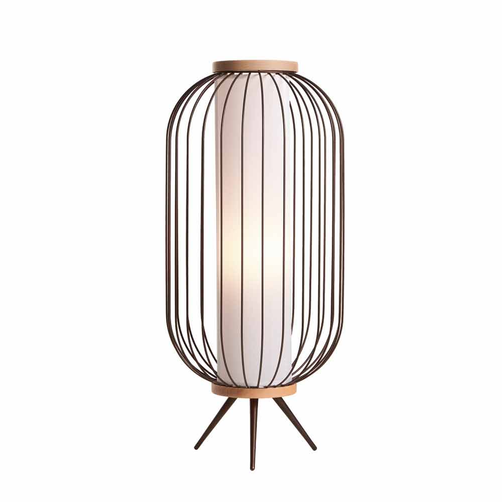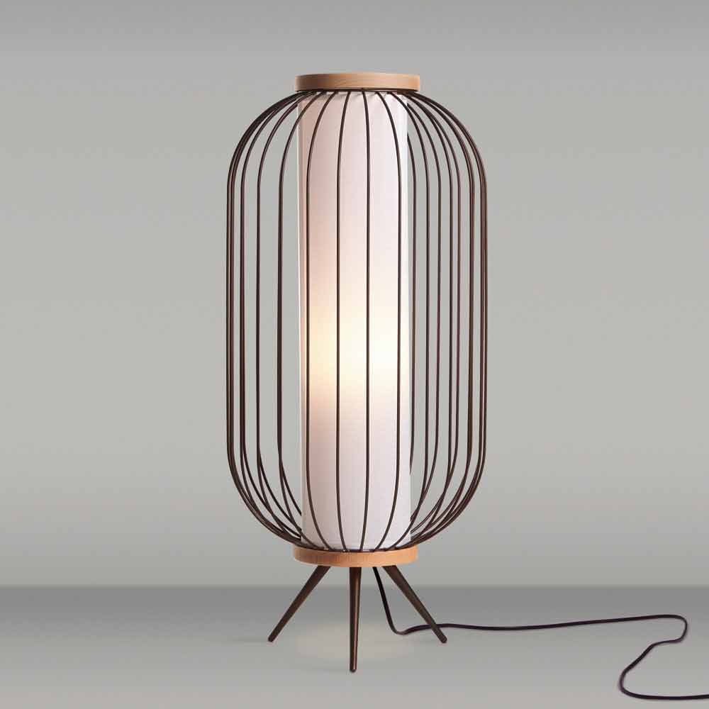 Stojací lampa z tvarované ocelové tyče a natřeny epoxidových prášků. Tyto dvě skupiny, které uzavírají tělo jsou zaoblené přírodní dřevo. Pozemní verze mohou být také použity jako svuotatasche buď bez stínidla. LED světelný zdroj ve verzi s rukojetí je vybaven dobíjecí baterií, která vydrží dicirca 6 hodin.
