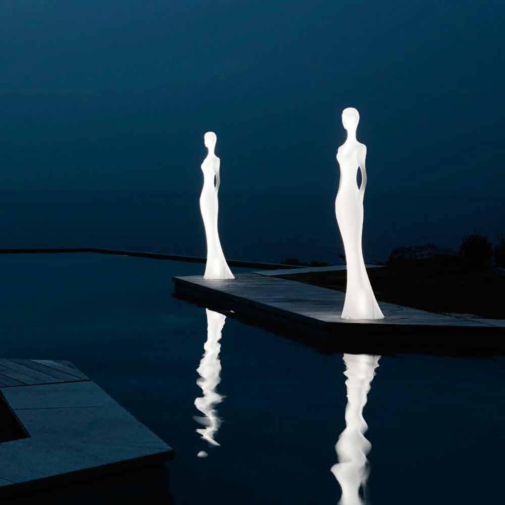 Zcela nová, když položí nohy na zem, hraje si Penelope se starým ve stejnou dobu. Je inspirován klasickými sochami, ozdobou vil a zahrad, ale ztenčuje jejich tvary ve stylizaci, která zavání jak Jacobean, tak Etruscan. Antropomorfní, ale nadměrně velký (přes dva metry vysoký), klidný a ironický, lineární, ale překvapivý, je to vlastně koncentrace odkazů a návrhů. Nebo, pokud chcete, je to jen krásná lampa.