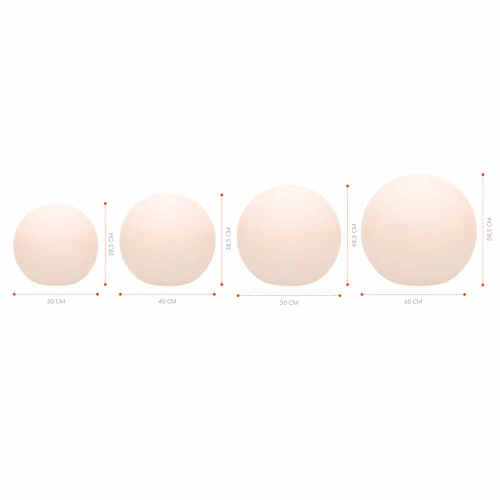 Venkovní kulatá solární LED podlahová lampa v různých velikostech a barvách.
