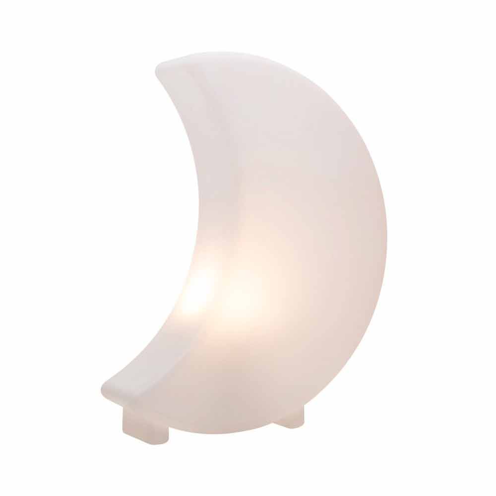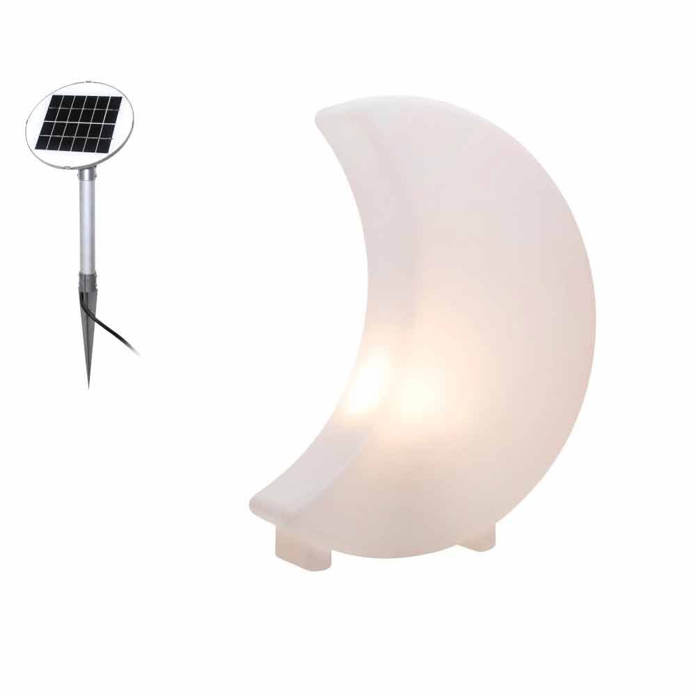 Stojací nebo stolní lampa ve tvaru měsíce pro vnitřní nebo venkovní použití, dostupná ve dvou velikostech as různými typy útoku.