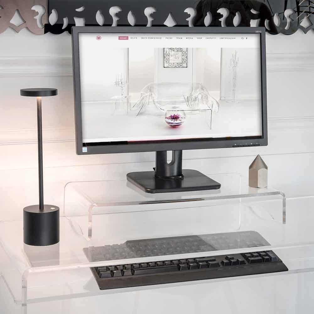 Podpora monitoru v průhledném nebo kouřovém plexiskle vyrobeném v italském designu.