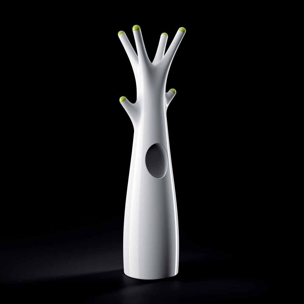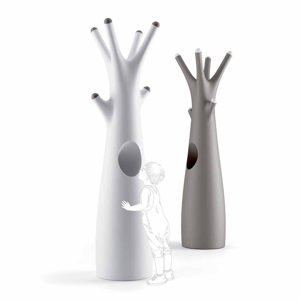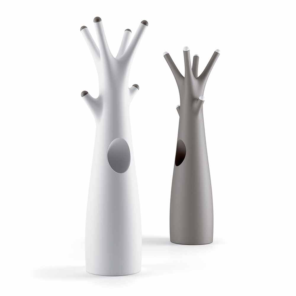 polyethylenu , vysoce kvalitního materiálu odolného proti nárazu, díky němuž je produkt praktický a funkční, aniž by byla zanedbána dekorativní a vizuální stránka. K dispozici v matné nebo lakované verzi, která je jasná a umožňuje vytvářet světelné hry a odrazy, které se stávají protagonisty prostředí. Přesně to charakterizuje jeho design, který připomíná tvar stromu s praktickým vnitřním prostorem, který je ideální pro uložení klíčů, brýlí nebo jakéhokoli jiného předmětu.
