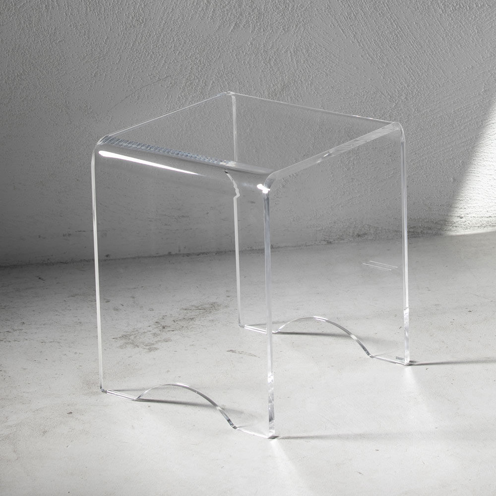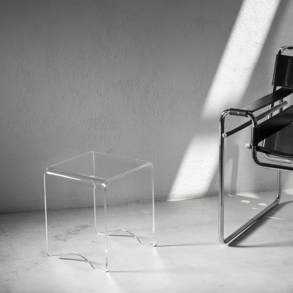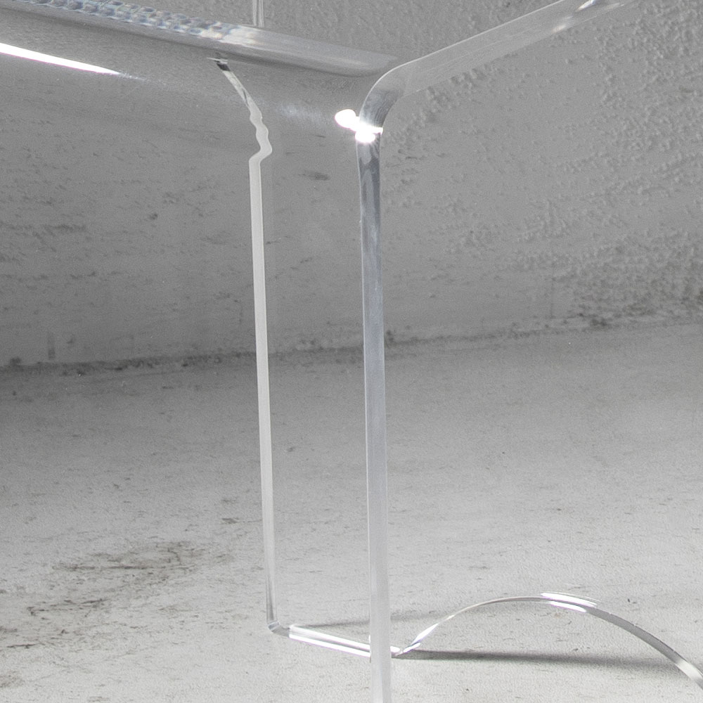 Tato stolička ke konferenčnímu stolku má všestranný design s čistými a minimálními liniemi a je celá vyrobena z průhledného akrylového krystalu řezaného laserem po celém obvodu, což jí dodává mimořádnou brilanci.