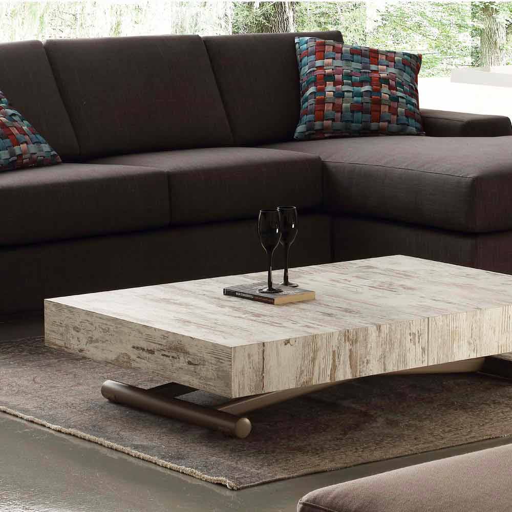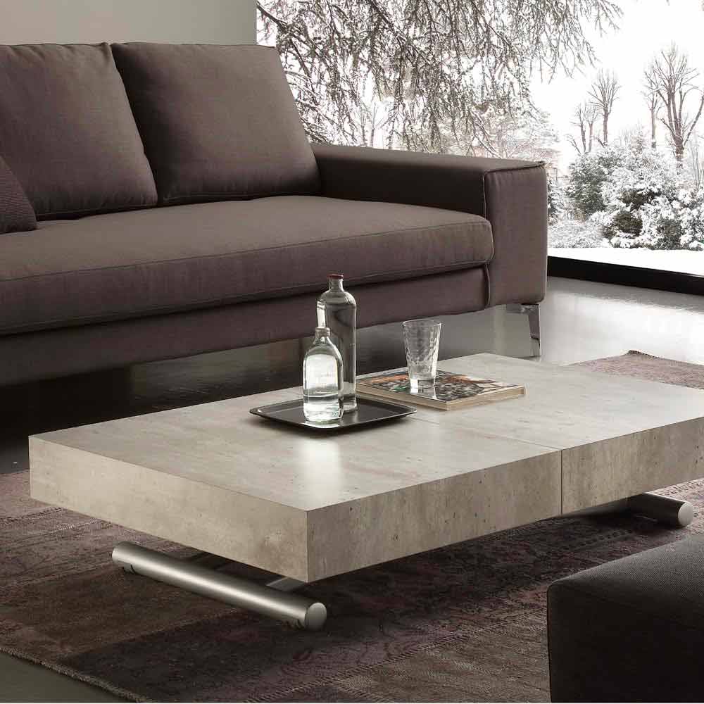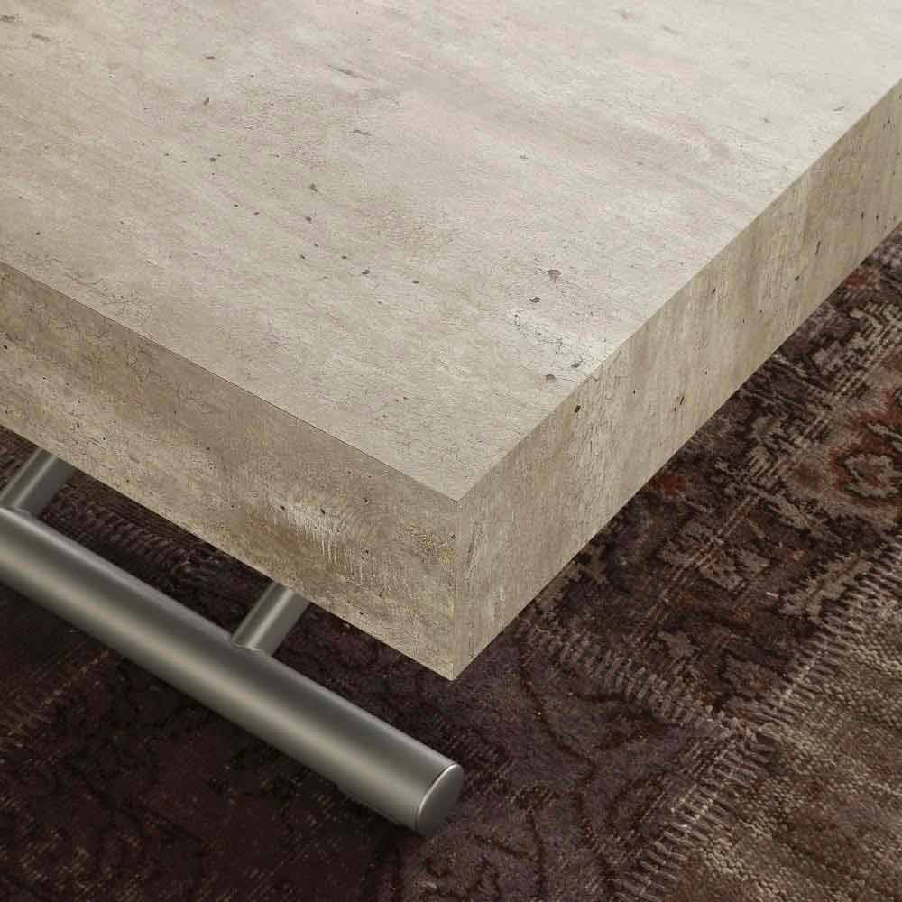 Roztahovací stůl s nastavitelnou výškou pomocí plynového čerpadla. Může být použit jako tabulky nebo jako odkládací stolek. Kovový rám a podlaha v melaminové Vysoká kvalita, k dispozici ve dvou různých variantách: v betonové dokončovací žil v ročníku nebo variantě.