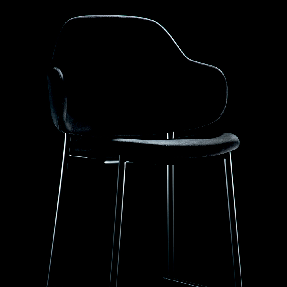 černě lakované oceli. Měkké a obepínající linie sedáku a opěradla se vyznačují uklidňujícími tvary. Ideální v jídelně, stejně jako v kuchyni, přizpůsobí prostředí svým designem a funkčností. Ztělesňuje styl, kvalitu, design a eleganci. Díky svým vlnitým, jednoduchým a stylizovaným liniím se hodí ke každému typu nábytku.
