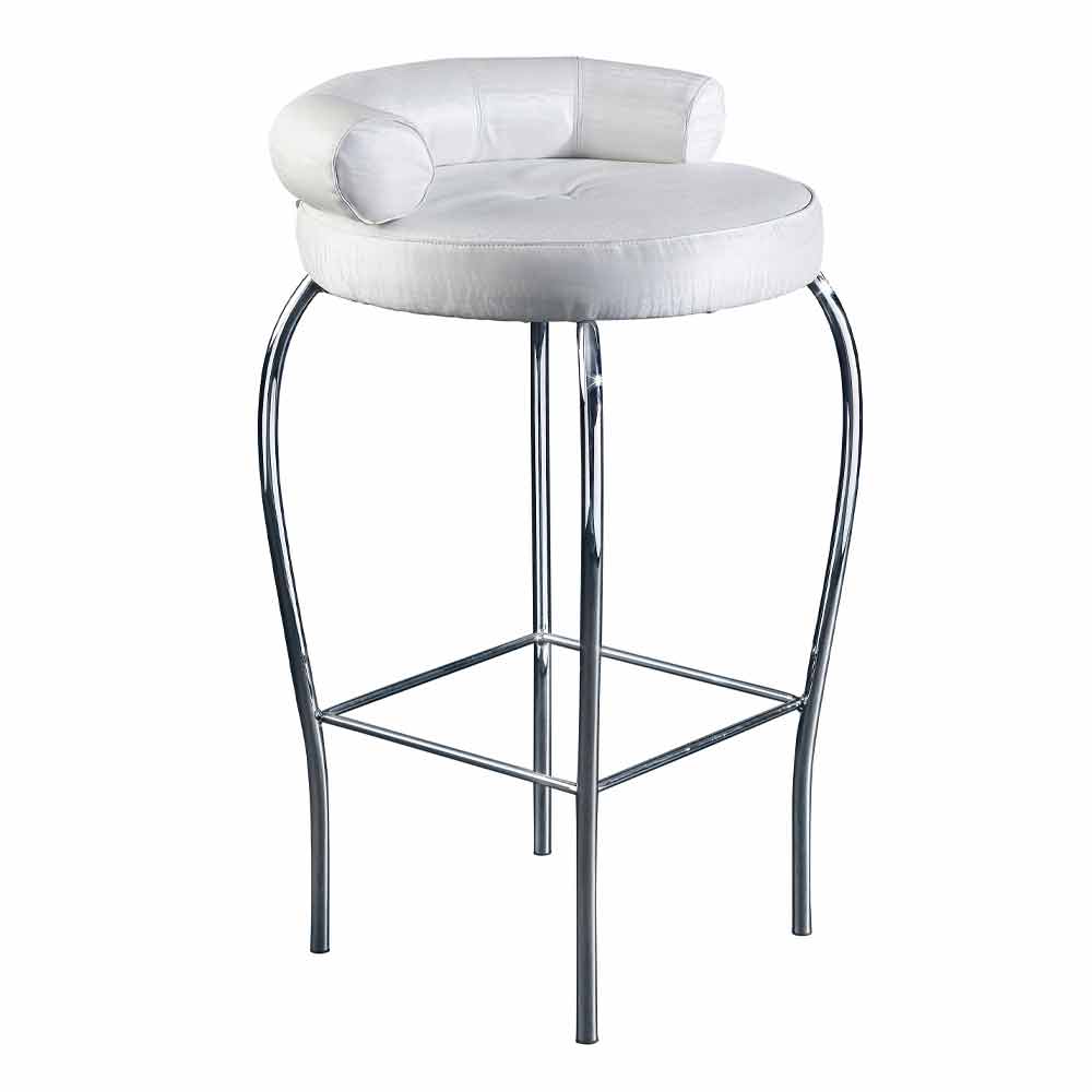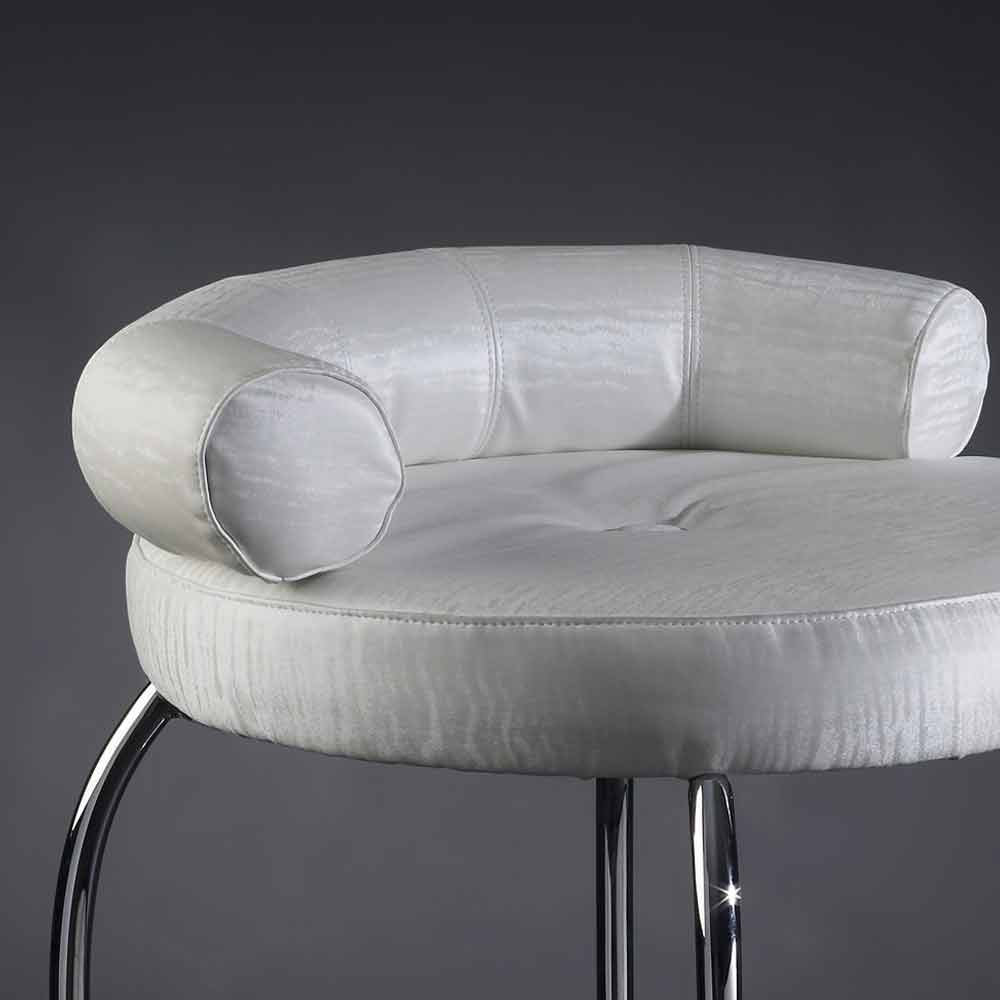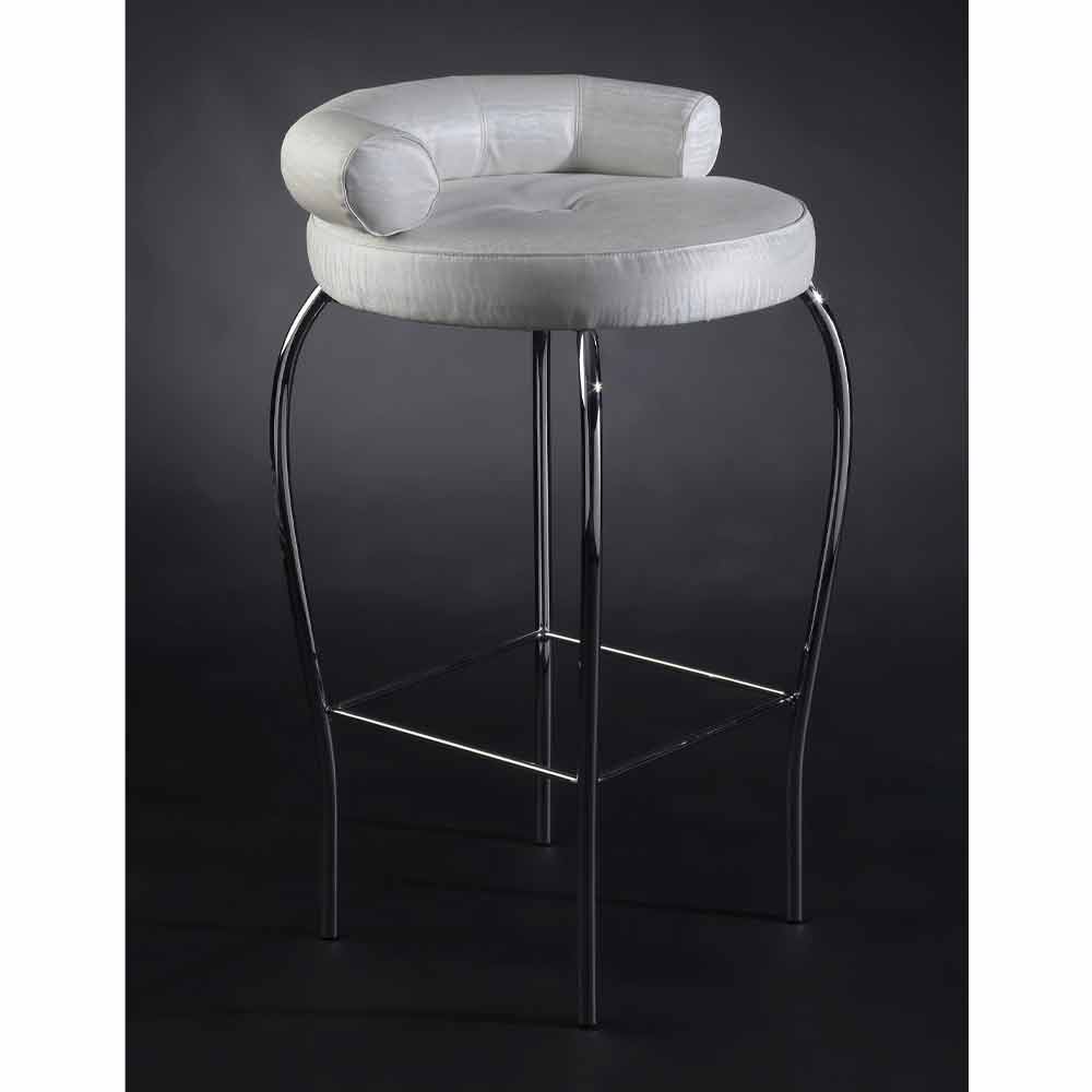 Vysoká ocelová stolička se sedadlem potaženým vzácnou tkaninou Made in Italy.