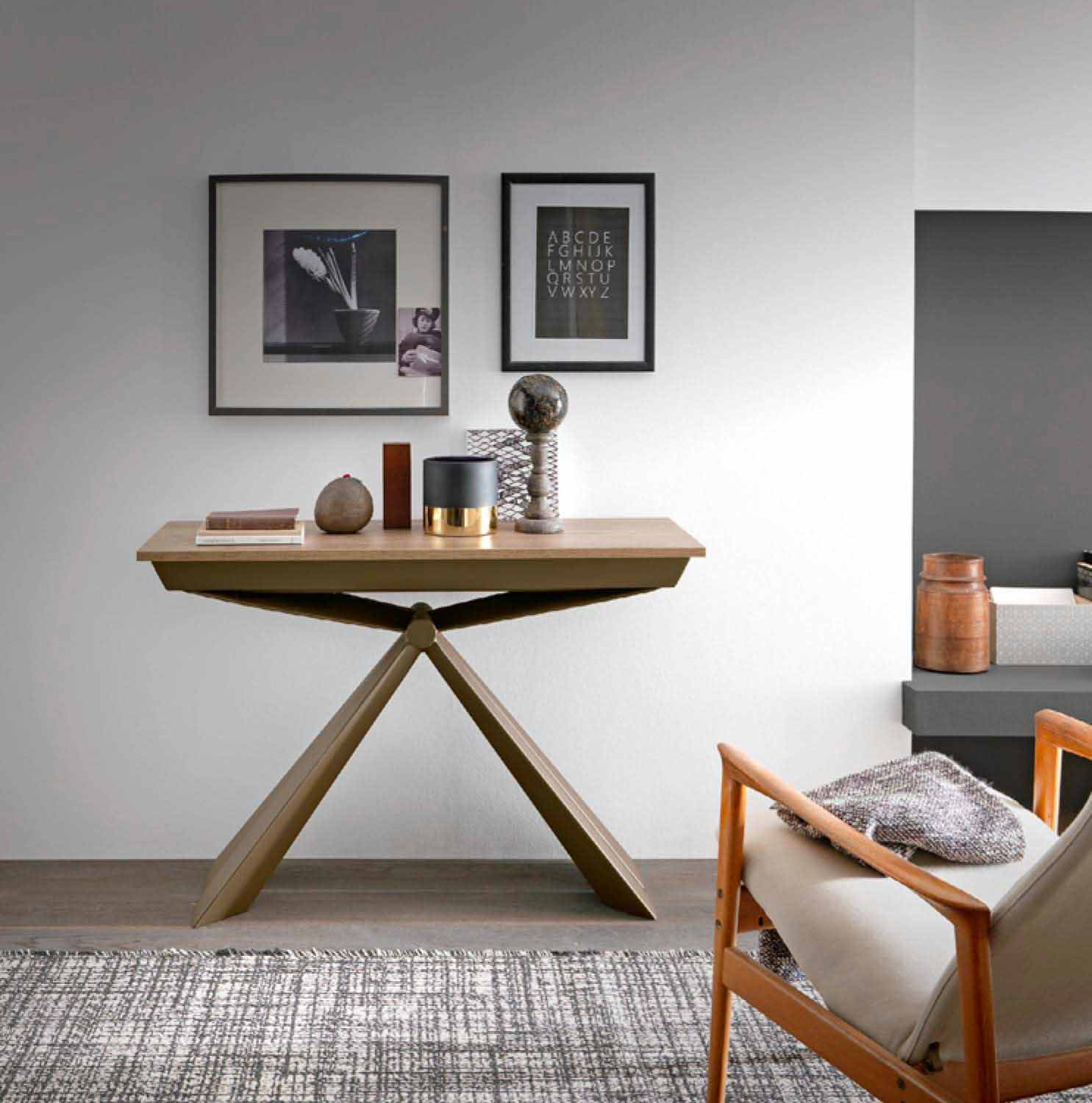 Konzole přestavitelná na jídelní stůl s deskou z melaminového dřeva a kovovou konstrukcí Made in Italy.