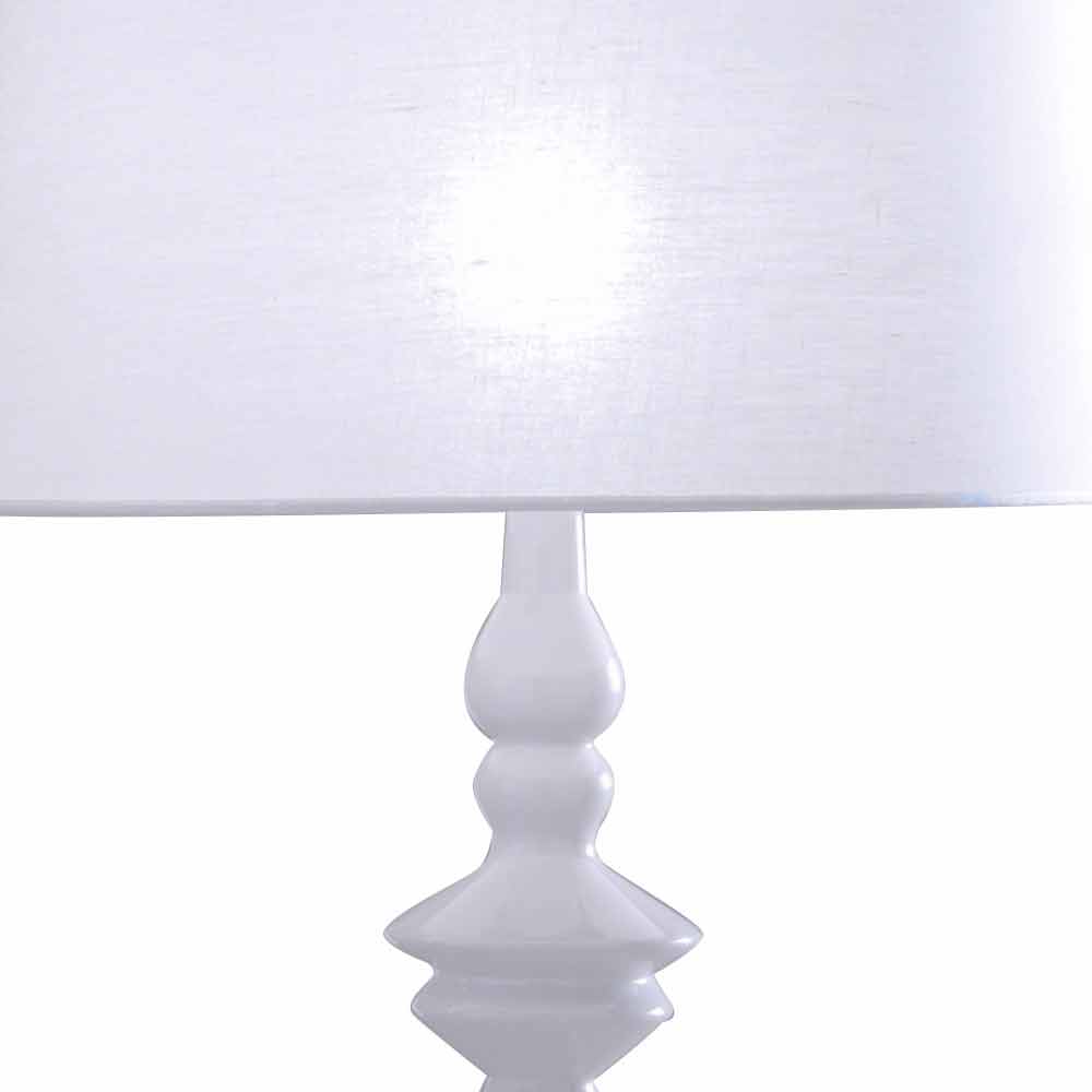 Lampa je vyrobena z lesklé bílé keramiky jako materiál, který představuje původ, tvárnost, stvoření a který vede přímo k počátkům naší kultury. Stínidlo v bílém plátně.