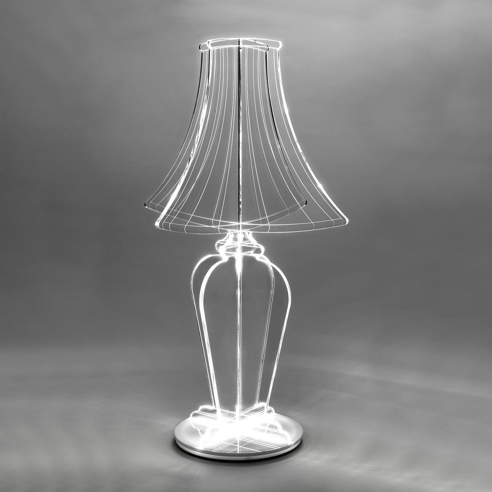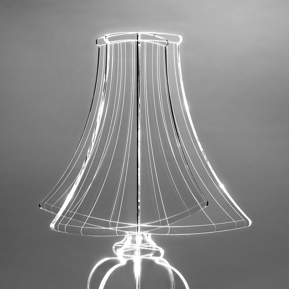 Nechte se okouzlit touto lampou, skutečným designovým klenotem, který spojuje technologické inovace s čistou estetickou krásou . Tato lampa je sochou světla. Plexisklo 100% PMMA, vybrané z původních polymerů, je pečlivě vyrobeno s přesností řezání laserem a vykresluje siluetu, která se rozsvítí a ožije, jakmile se lampa rozsvítí.
