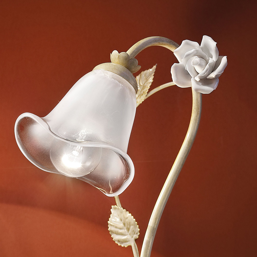 Stolní lampa v dekoru železné, skleněné a keramické růže vyrobené v Itálii firmou Ferroluce.