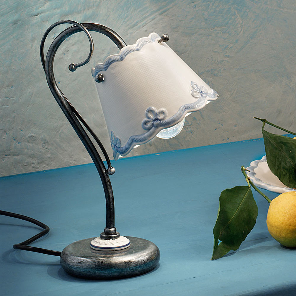 Tato stolní lampa je zcela ručně vyroben z kovu a ručně malované keramiky , vyzdvihnout řemeslnou zručnost a manuální zručnost řemeslníků.