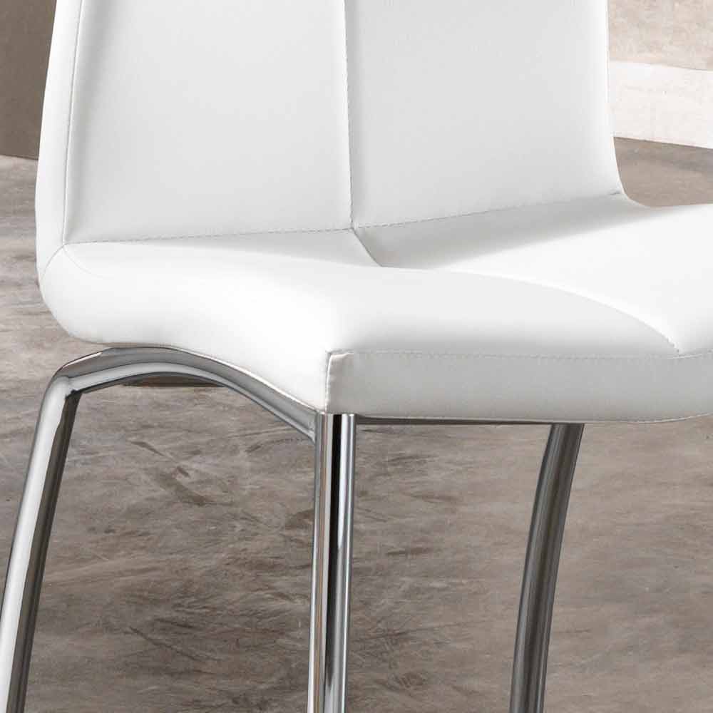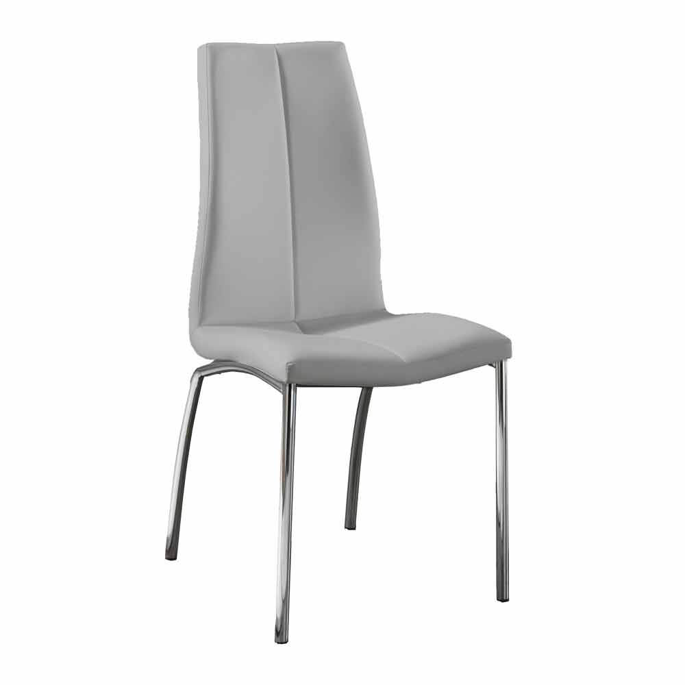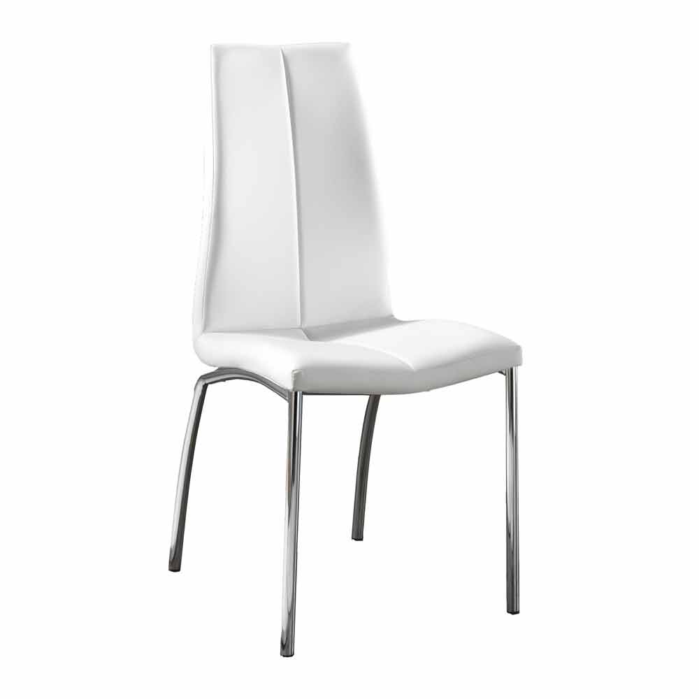 Židle s chromovanou kovovou strukturou, polstrovaným sedákem a opěradlem potaženým imitací kůže. K dispozici v různých barvách.