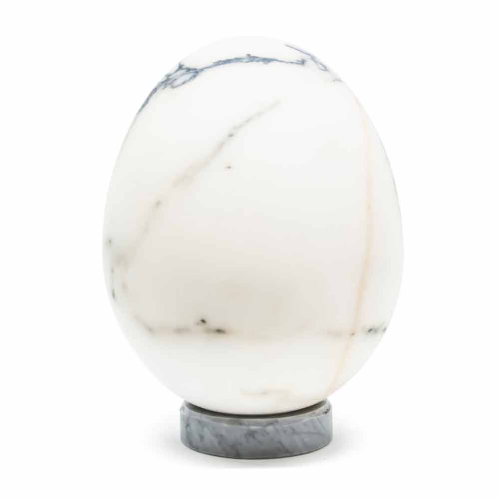 Vejce z mramoru Paonazzo střední velikosti, designový předmět luxusu a kvality vyrobený v Itálii.