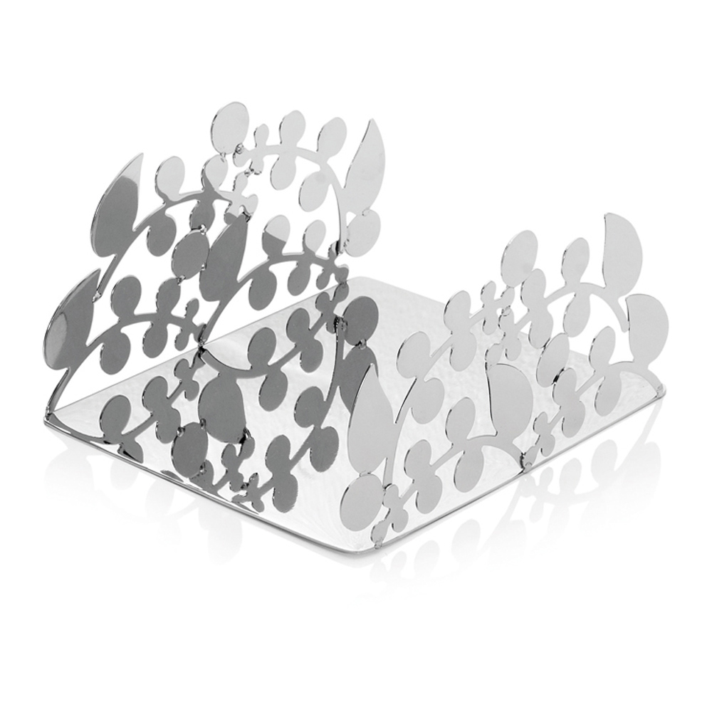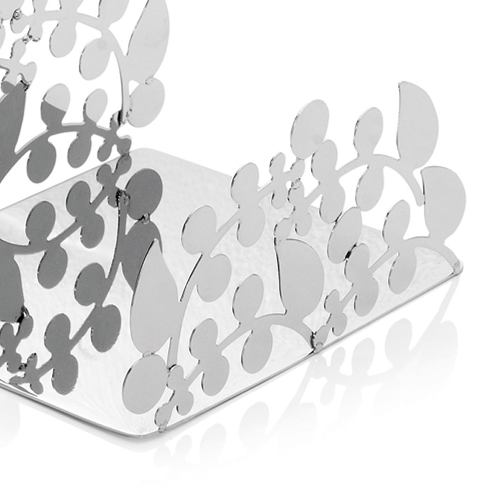 Tento držák na ubrousky se vyznačuje sofistikovaným a elegantním obdélníkovým designem , zcela vyrobeným ze stříbrného kovu s naturalistickými dekoracemi.