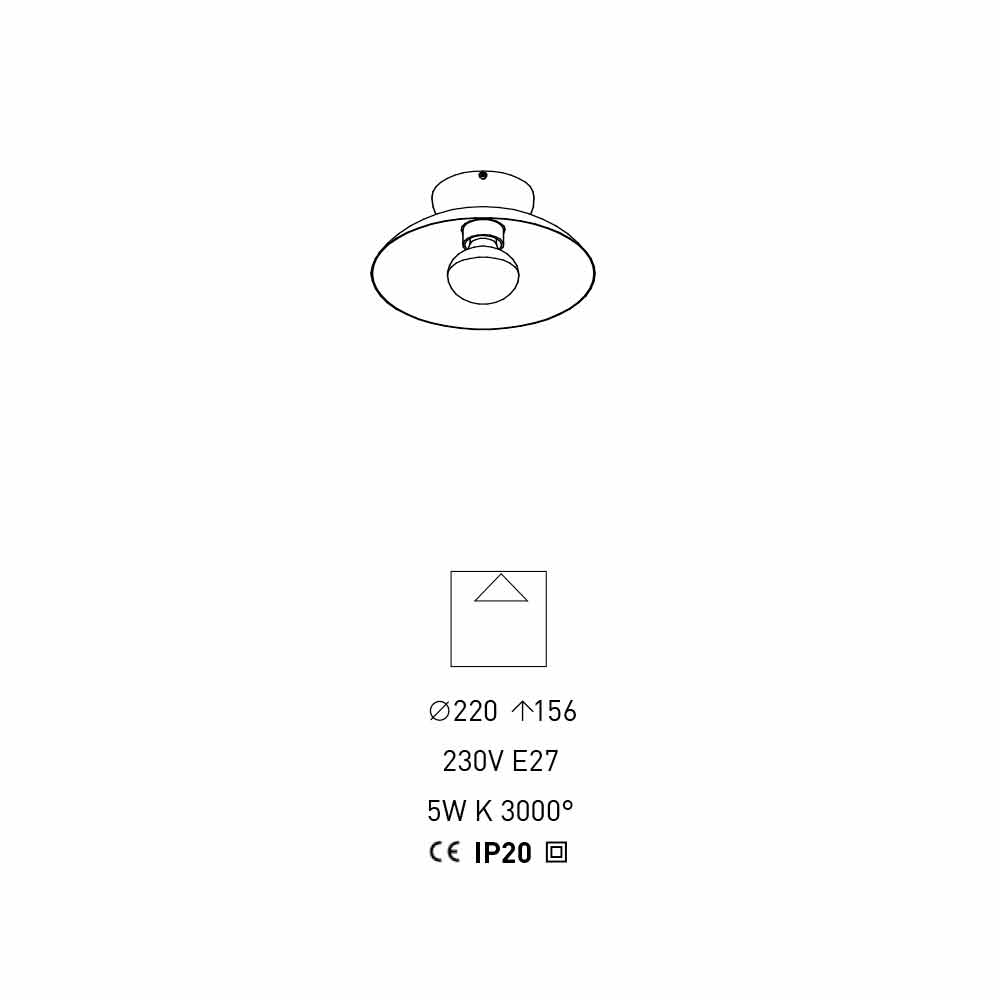 Tato stropní lampa je vyrobena z matného černého kovu obohaceného sférickou skleněnou baňkou se zlatými detaily. Jeho design se vyznačuje použitím sférických tvarů, které dodávají lampě vlnitost a harmonii a současně vytvářejí nádherné hry světla a intimní a přívětivé atmosféry.