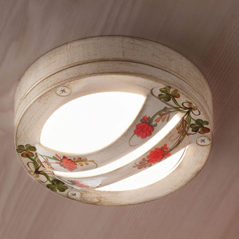 Kulaté venkovní stropní svítidlo z ručně malovaného hliníku s květinami, italské výroby Ferroluce.