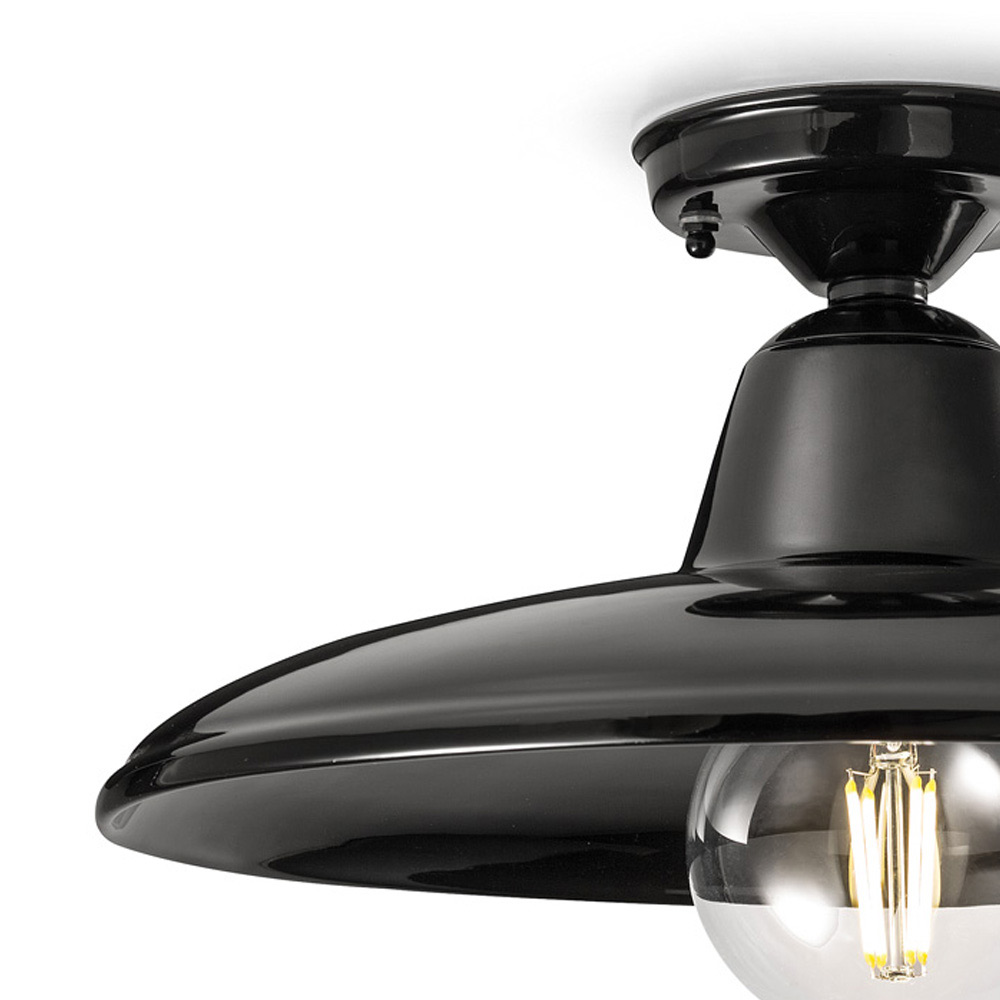 Černá nebo bílá keramická a železná stropní lampa v retro stylu italské výroby Ferroluce.