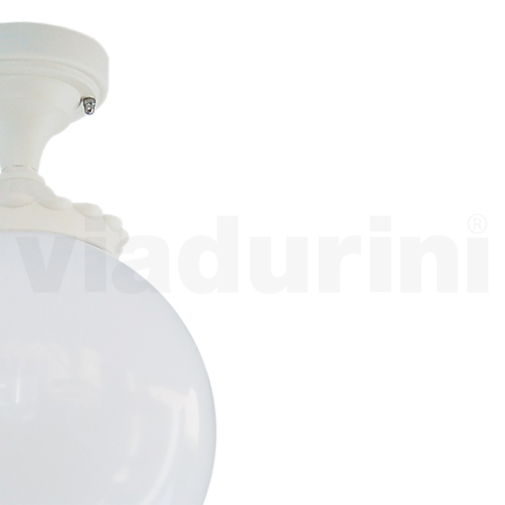 Zahradní lampa vyrobená z tlakově lité hliníkové konstrukce a opálového akrylového kulového difuzoru, zcela vyrobena v Itálii.