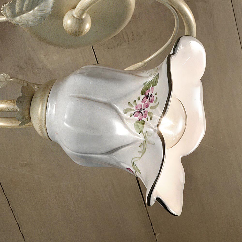 Stropní svítidlo z kovu a keramiky s ručně malovanými růžemi italské výroby Ferroluce.