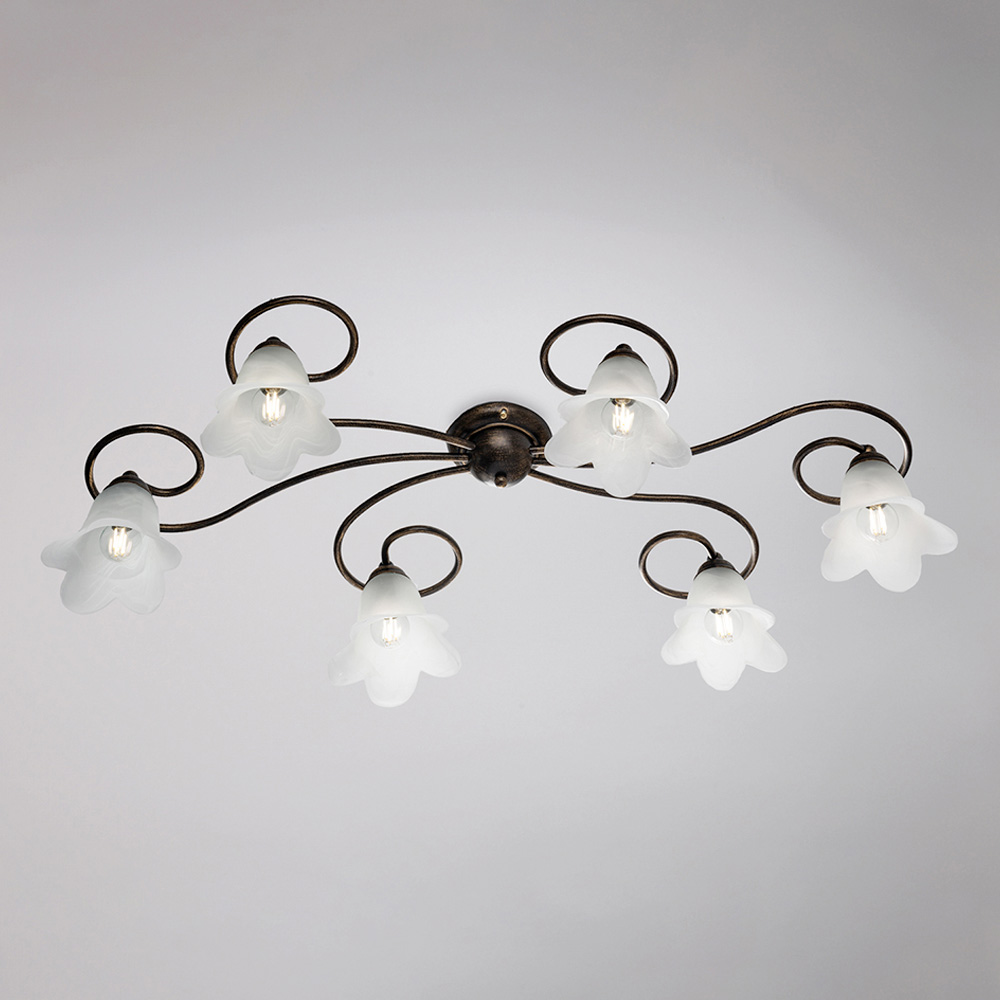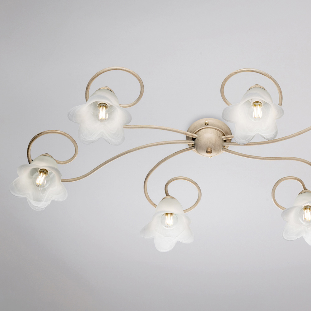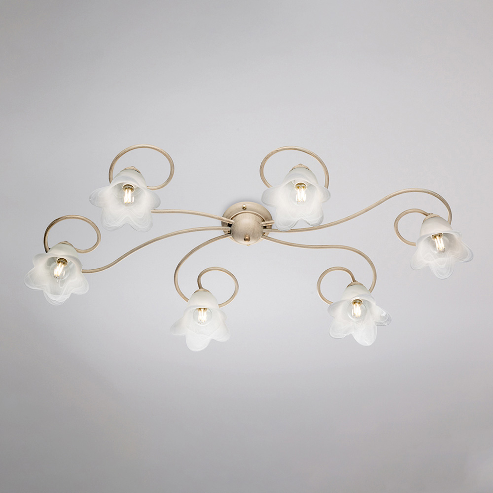 Pečlivě vybrané materiály – železo a sklo – dodávají svítidlu elegantní efekt a příjemný světelný výkon. Toto stropní svítidlo, kompletně vyrobené v Itálii, je výsledkem pečlivého řemeslného zpracování, které vylepšuje jak estetiku, tak funkčnost.