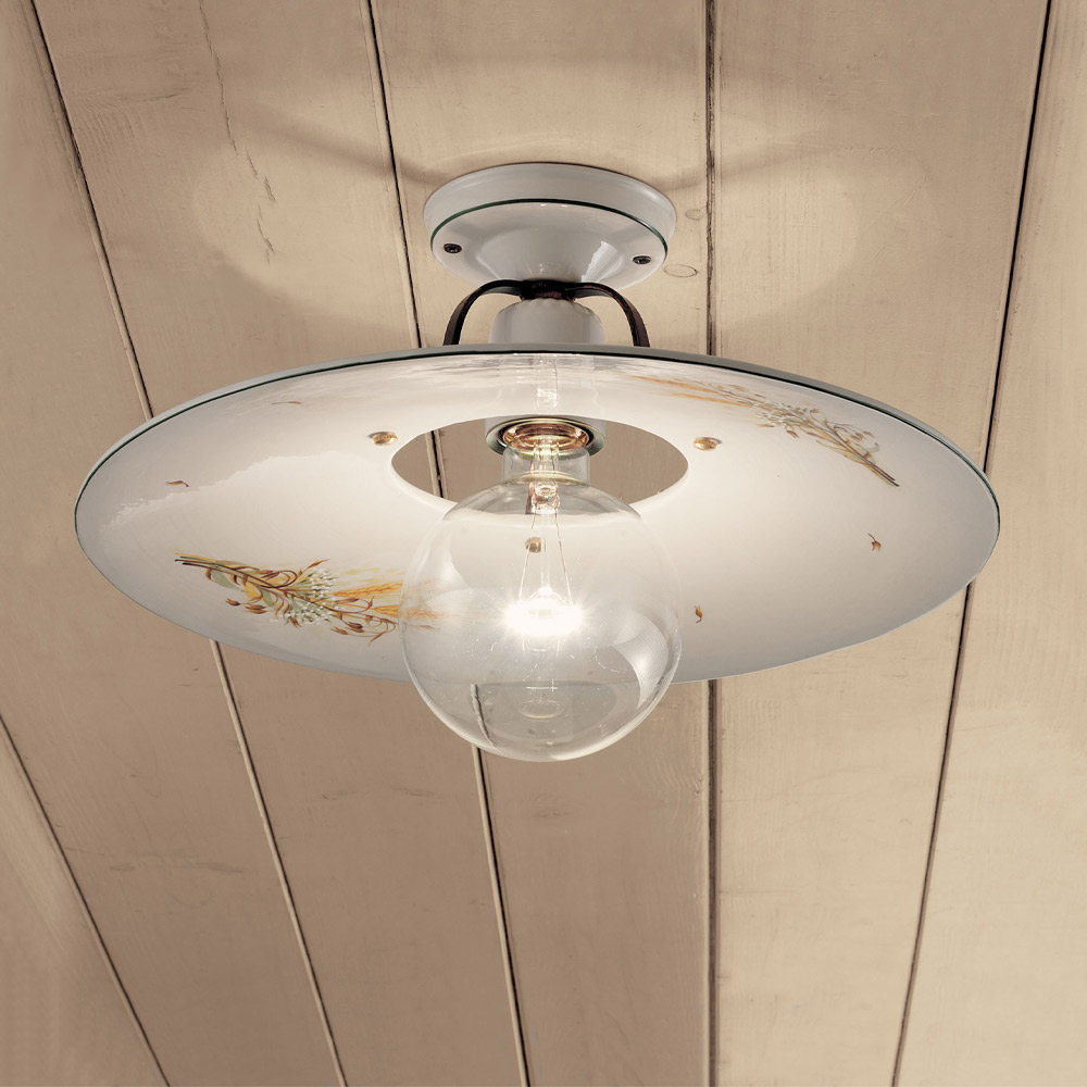 Vintage stropní svítidlo z hrubého železa a keramiky s ručními dekoracemi, 2 velikosti vyrobené v Itálii od Ferroluce.