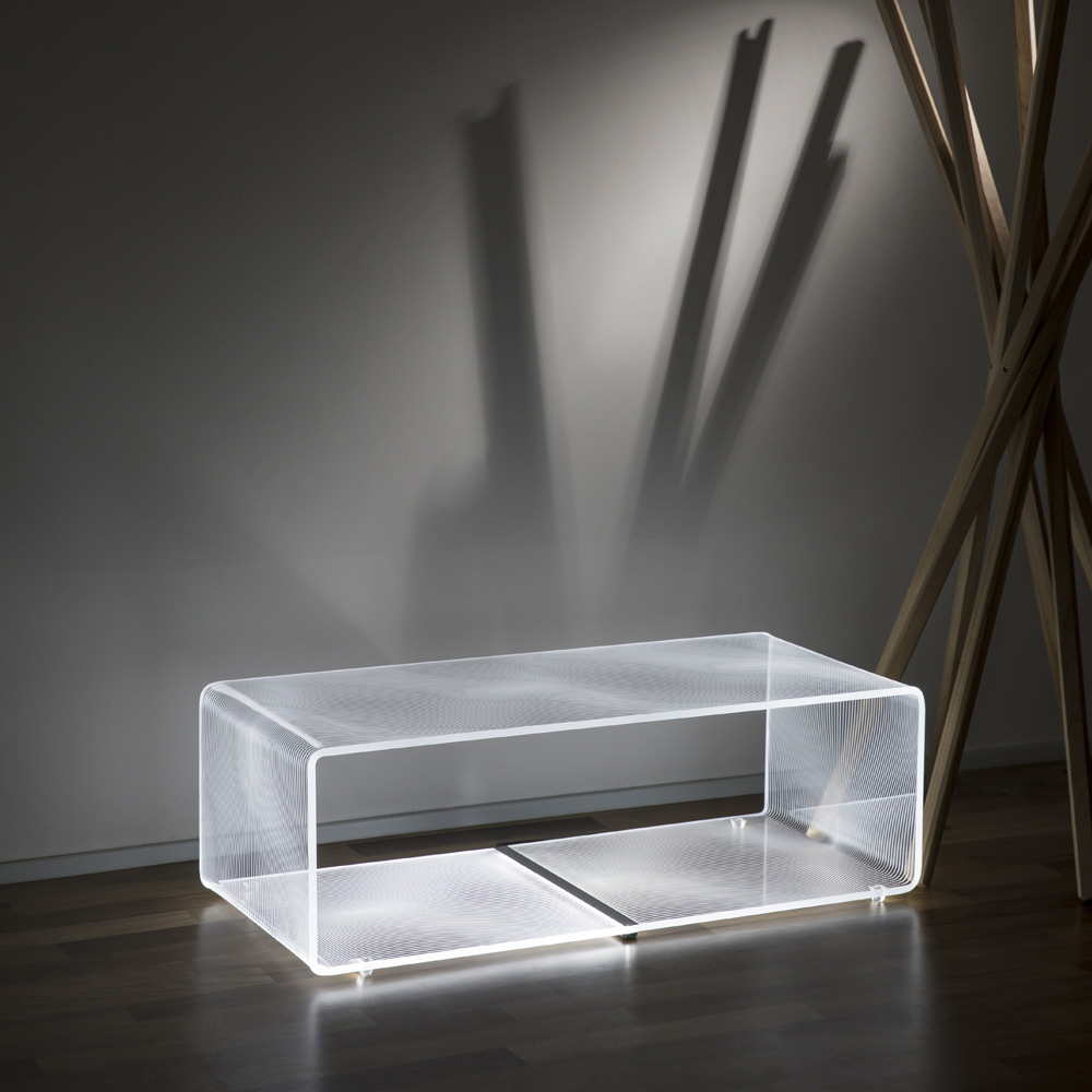 Svítící konferenční stolek s RGB LED v průhledném akrylu 2 varianty a 2 velikosti vyrobené v Itálii.